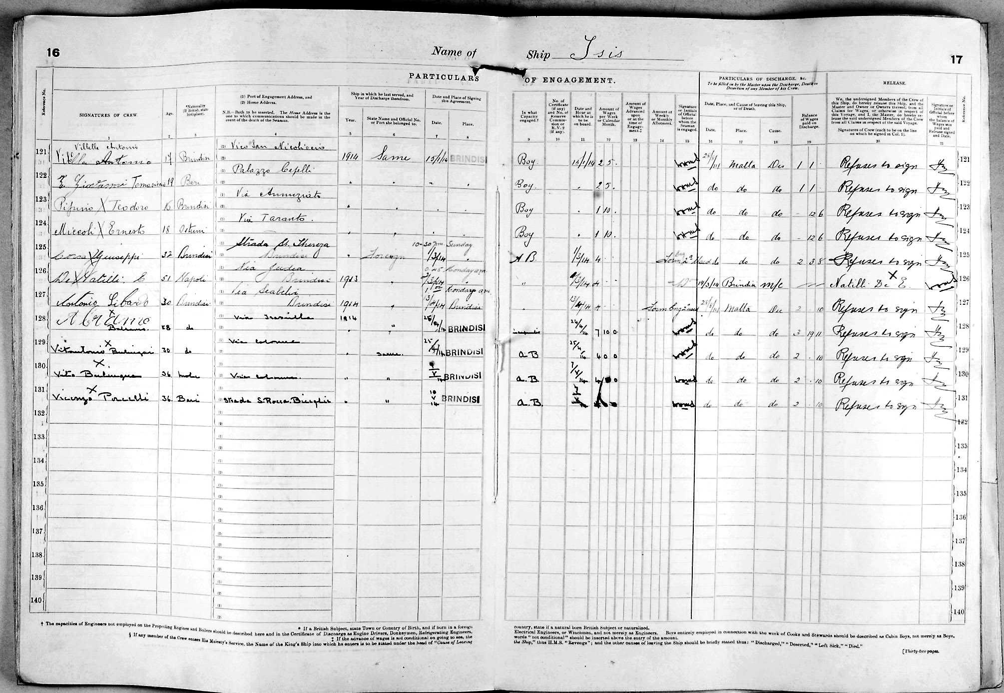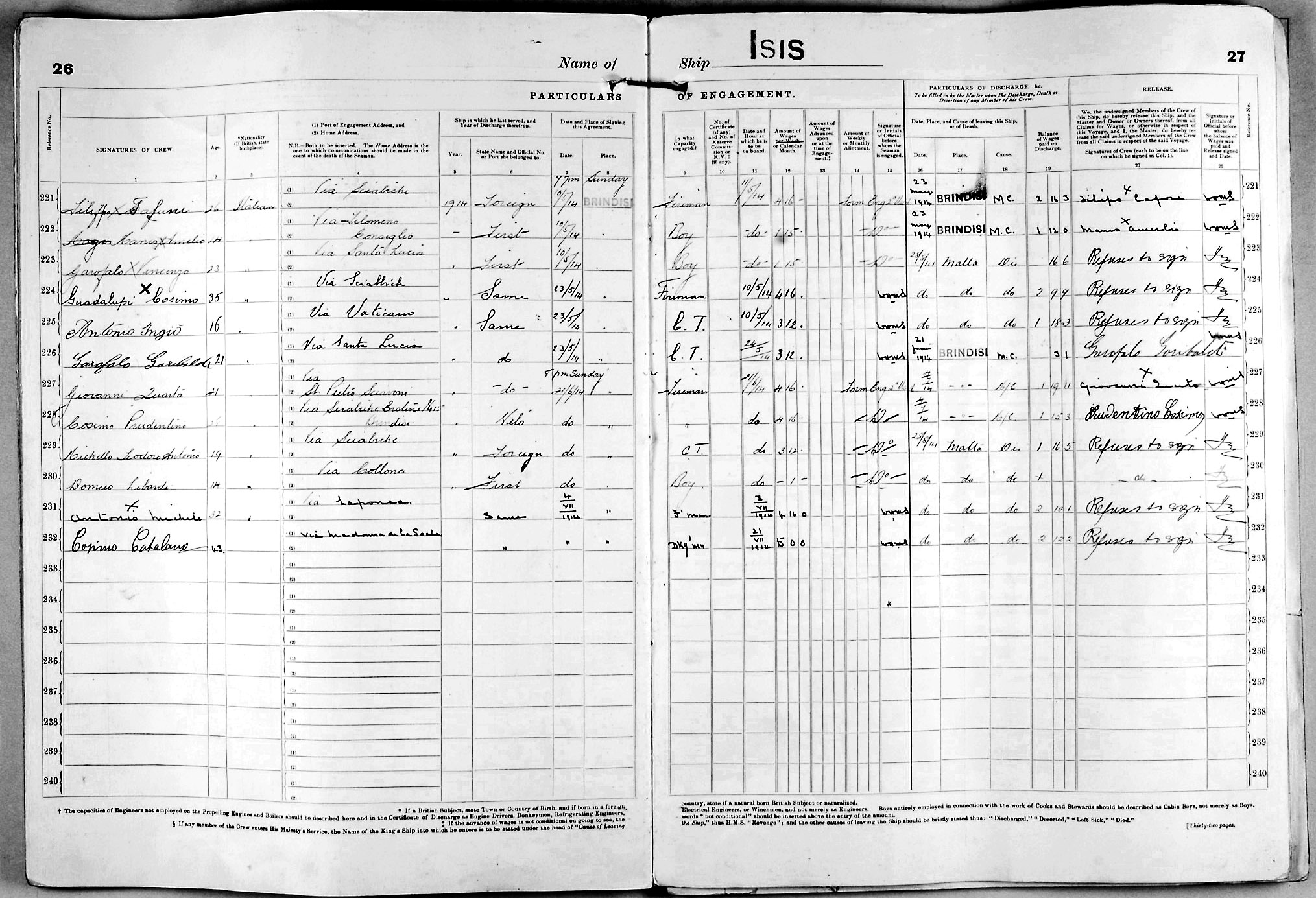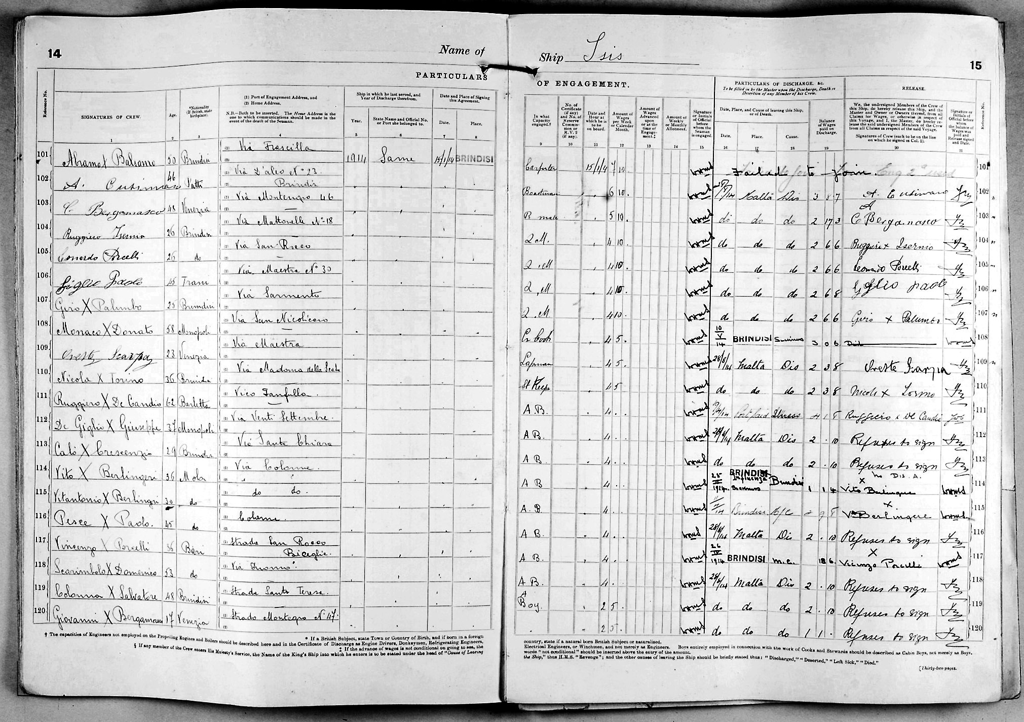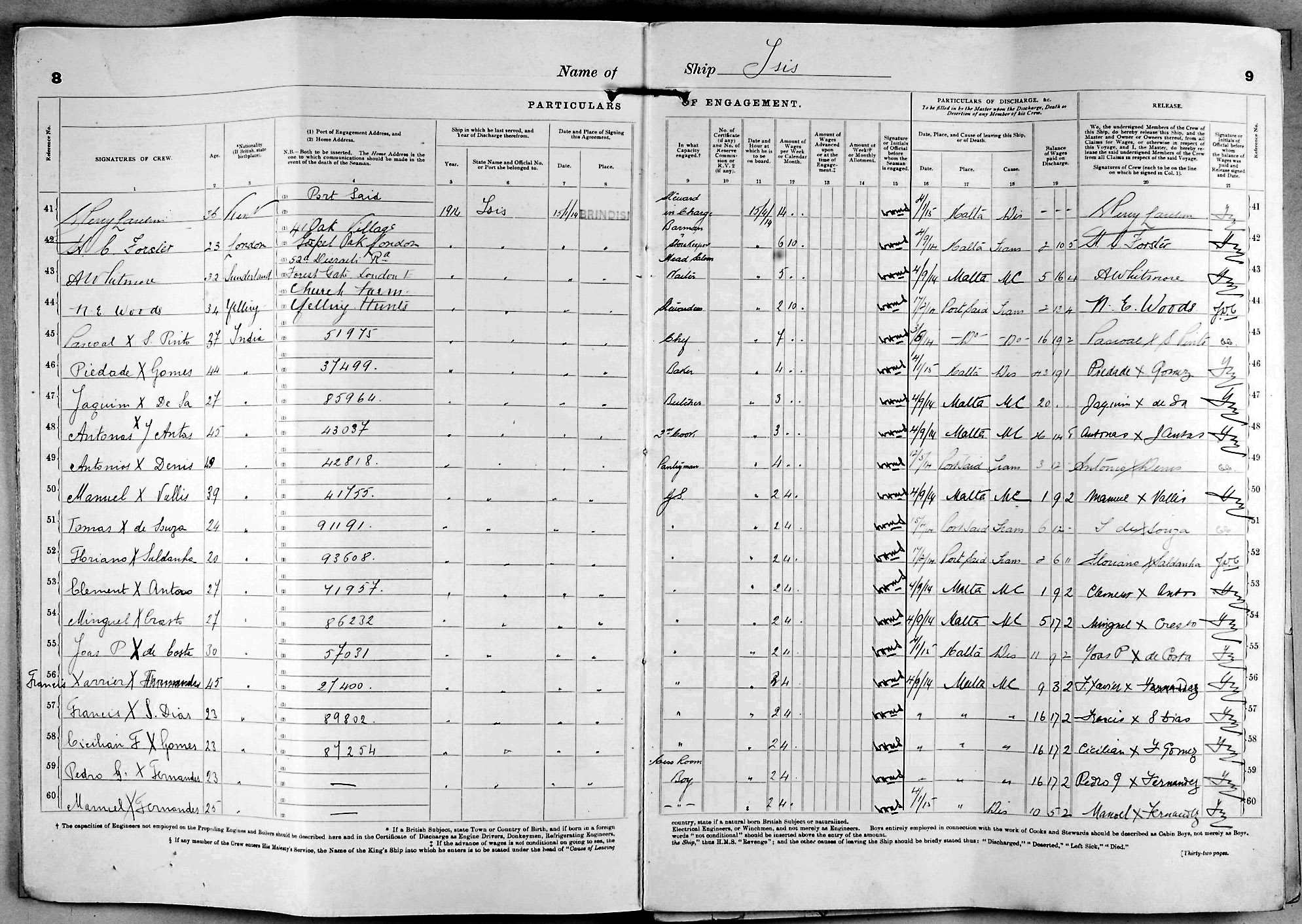 1915 crew list for the vessel 'ISIS'