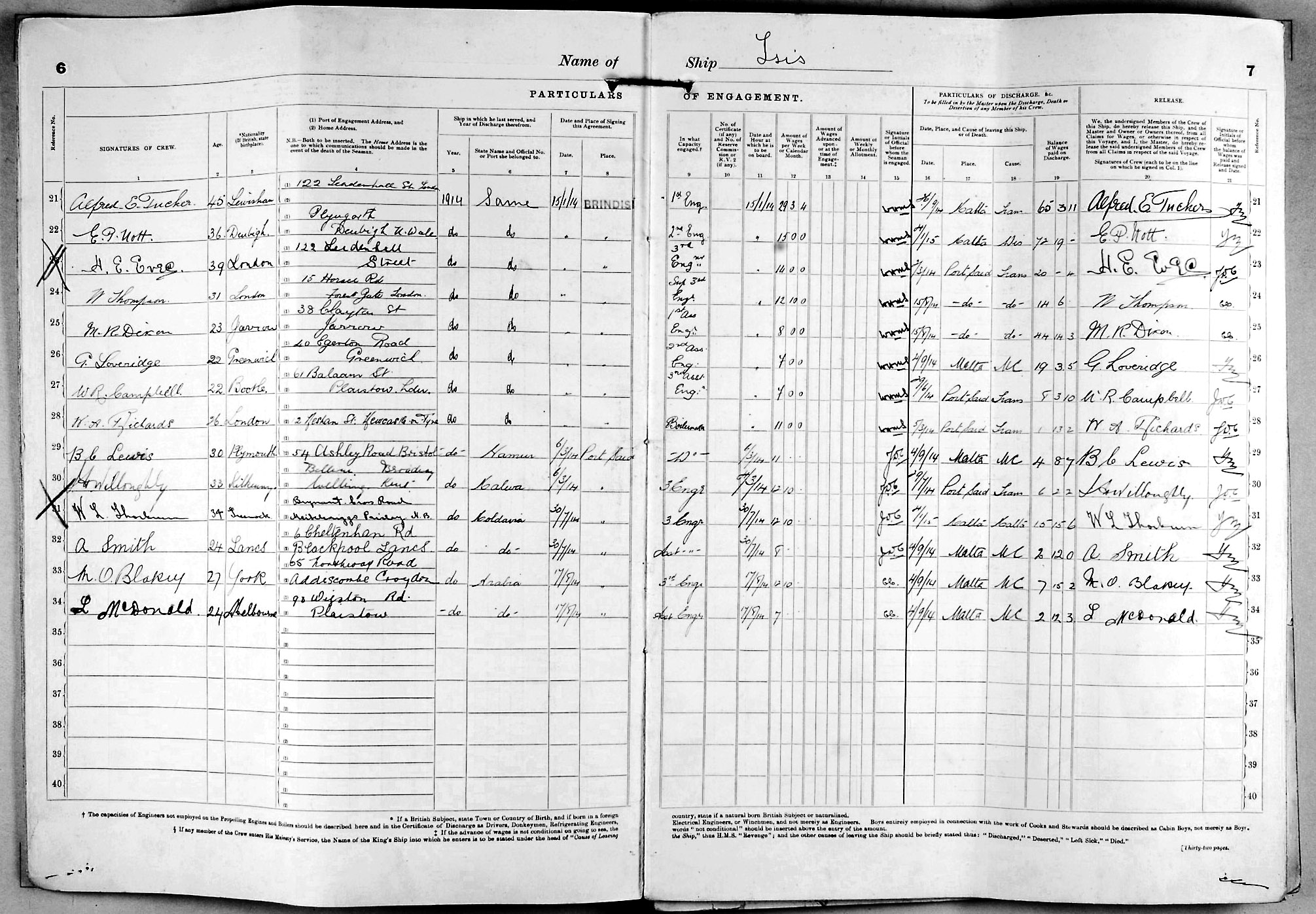 Crew list document for vessel 'ISIS'
