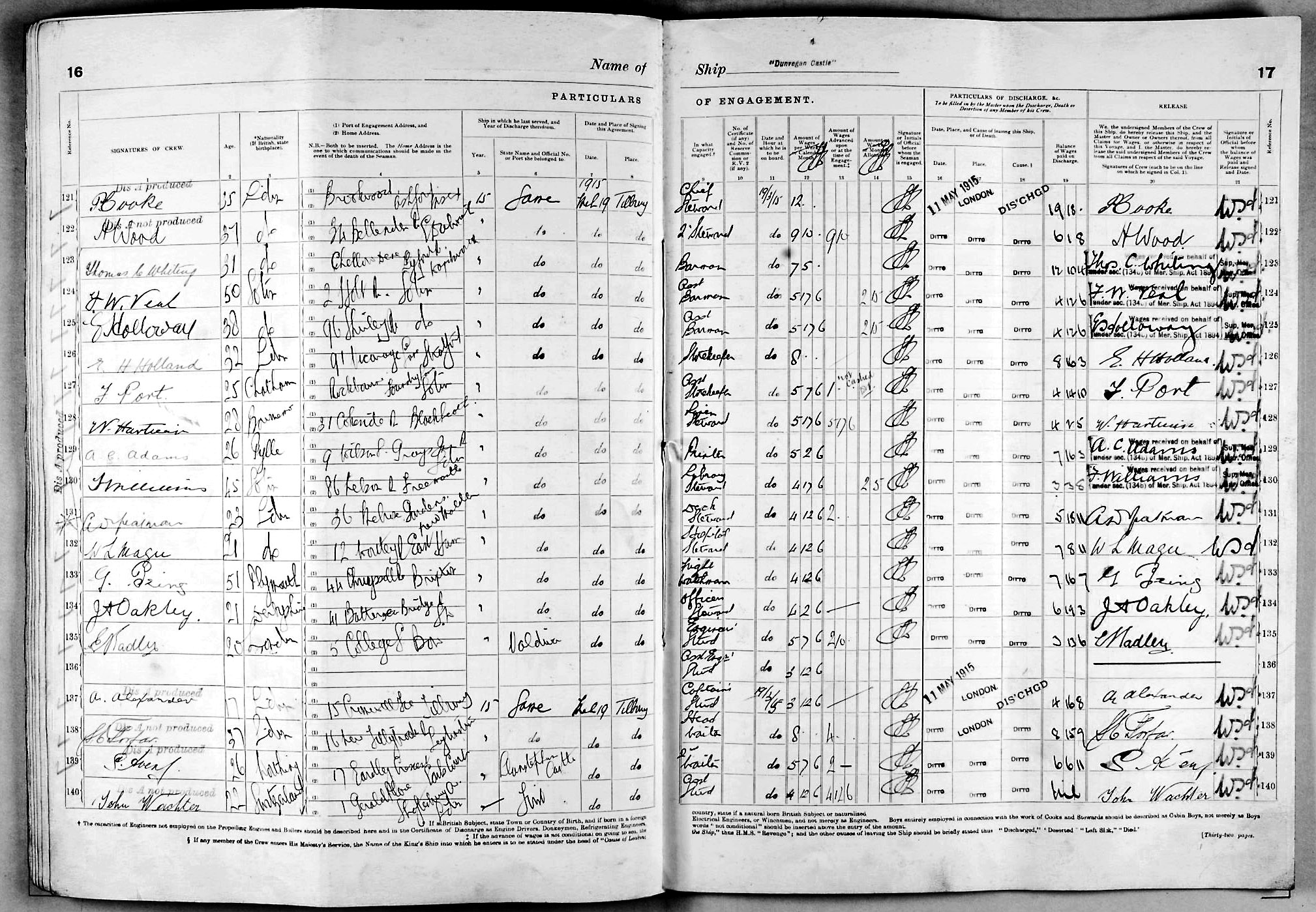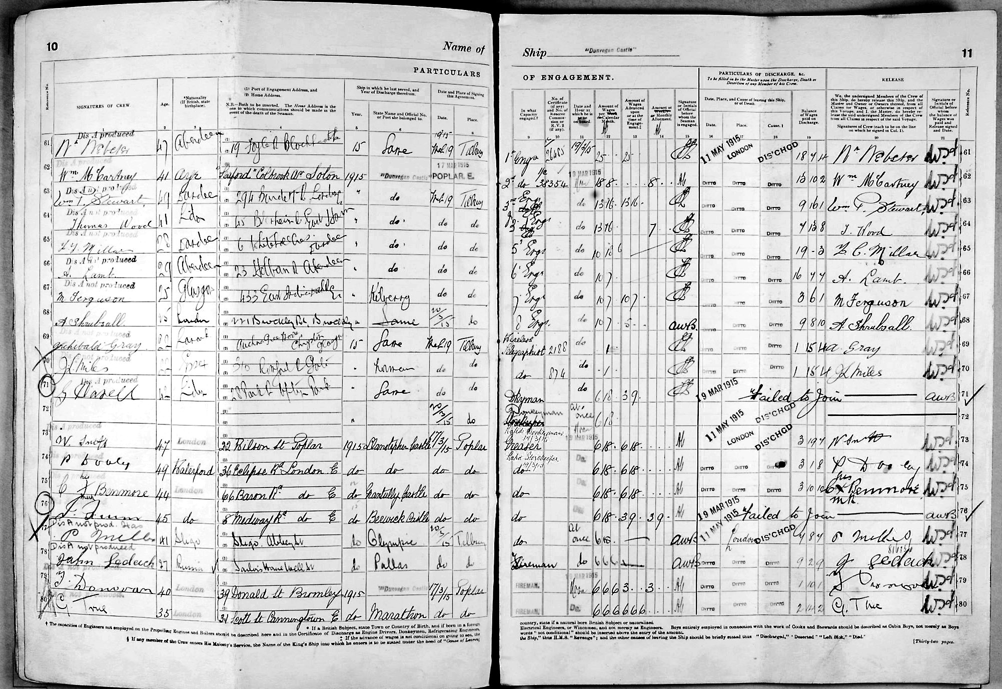 Crew list document for vessel 'DUNVEGAN CASTLE'
