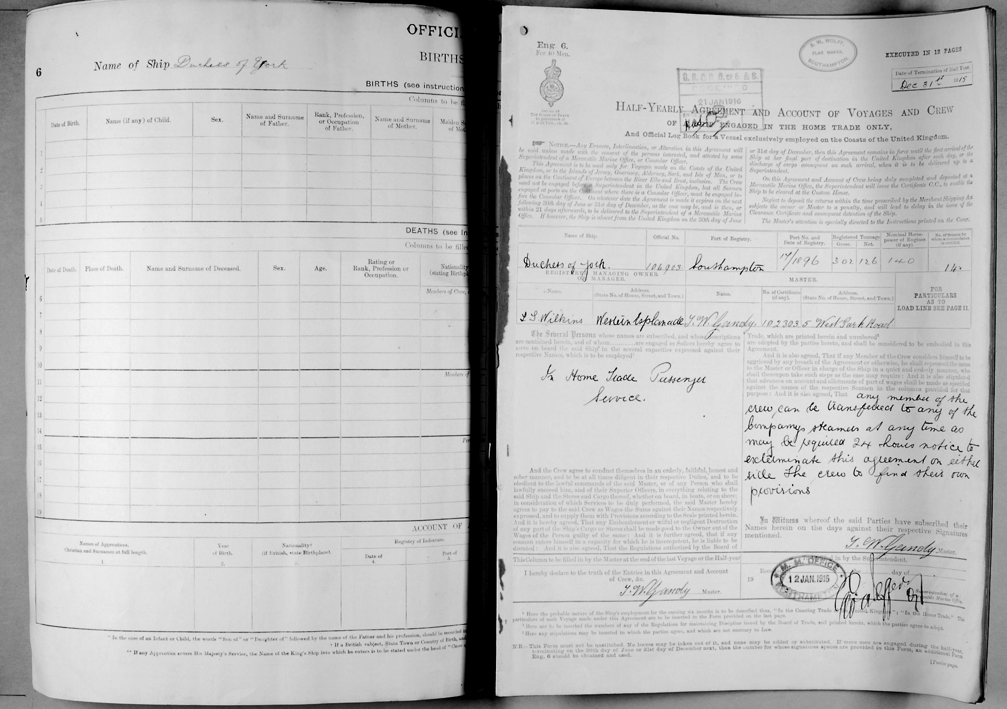 1915 crew list for the vessel 'DUCHESS OF YORK'