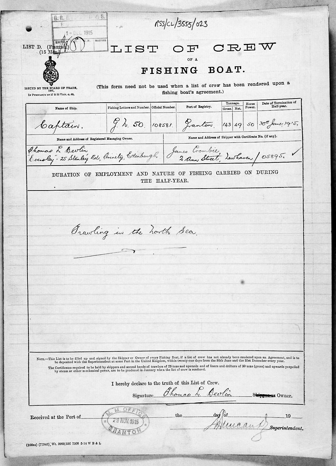 Crew list document for vessel 'CAPTAIN'