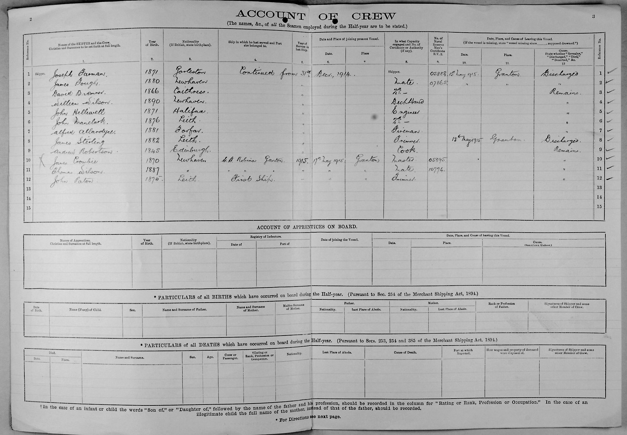 1915 crew list for the vessel 'CAPTAIN'