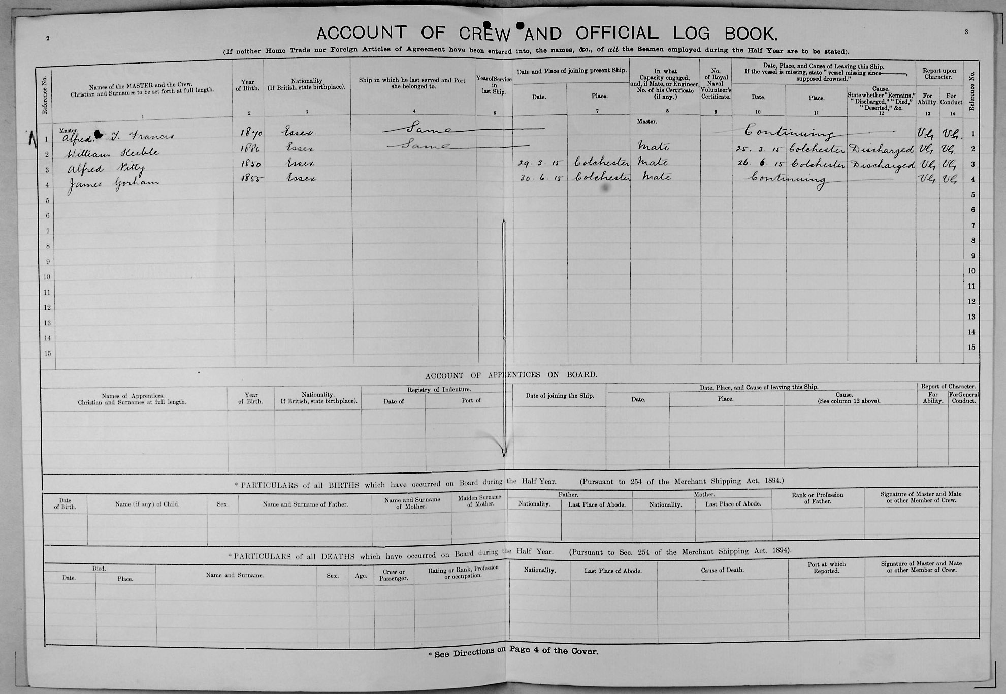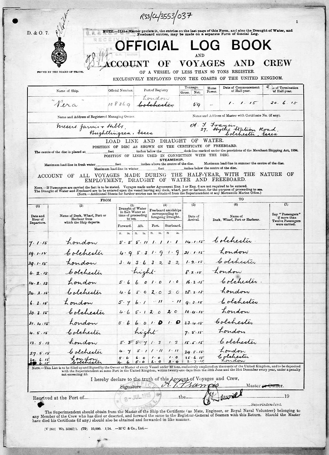 1915 crew list for the vessel 'VERA'