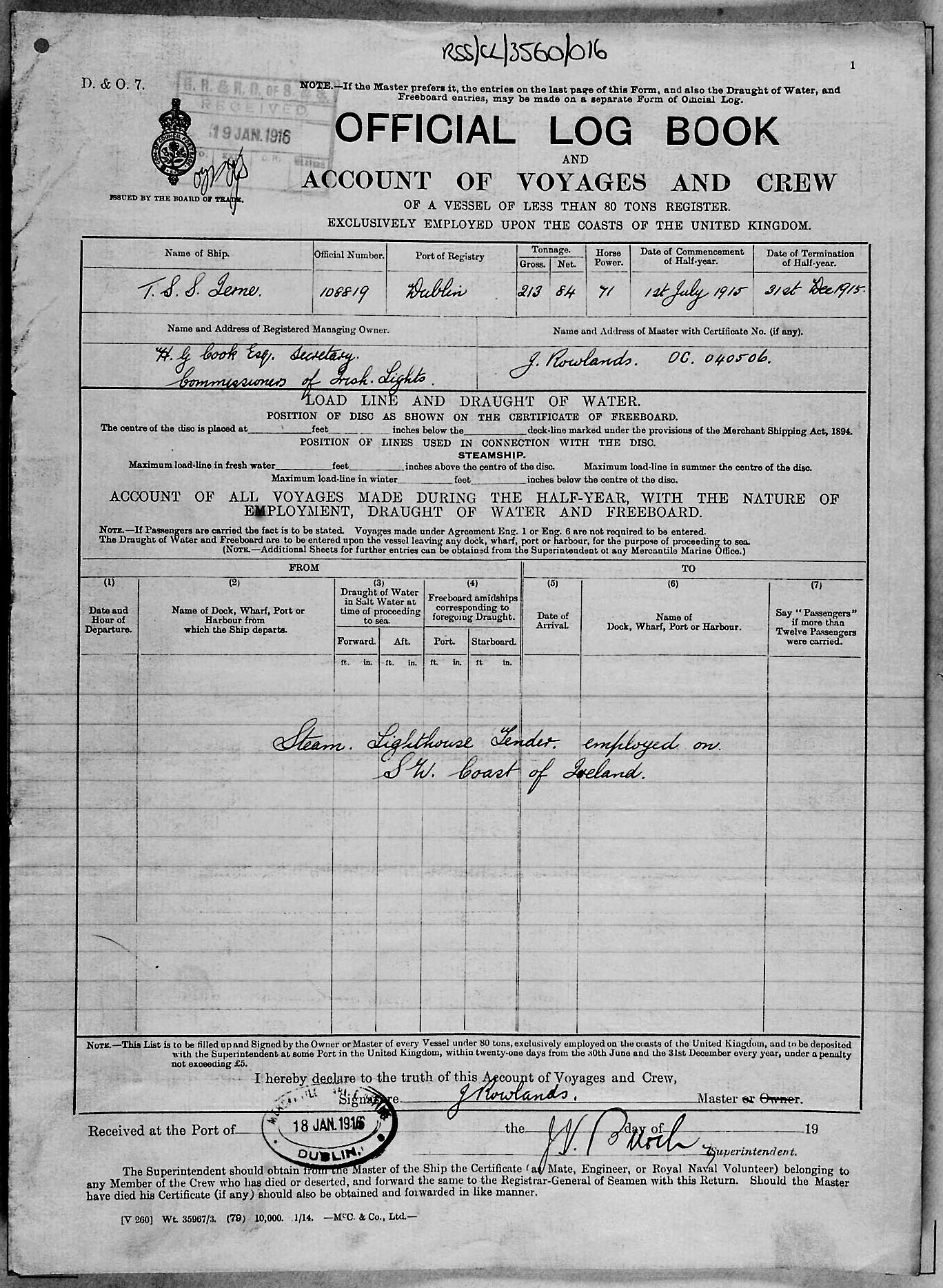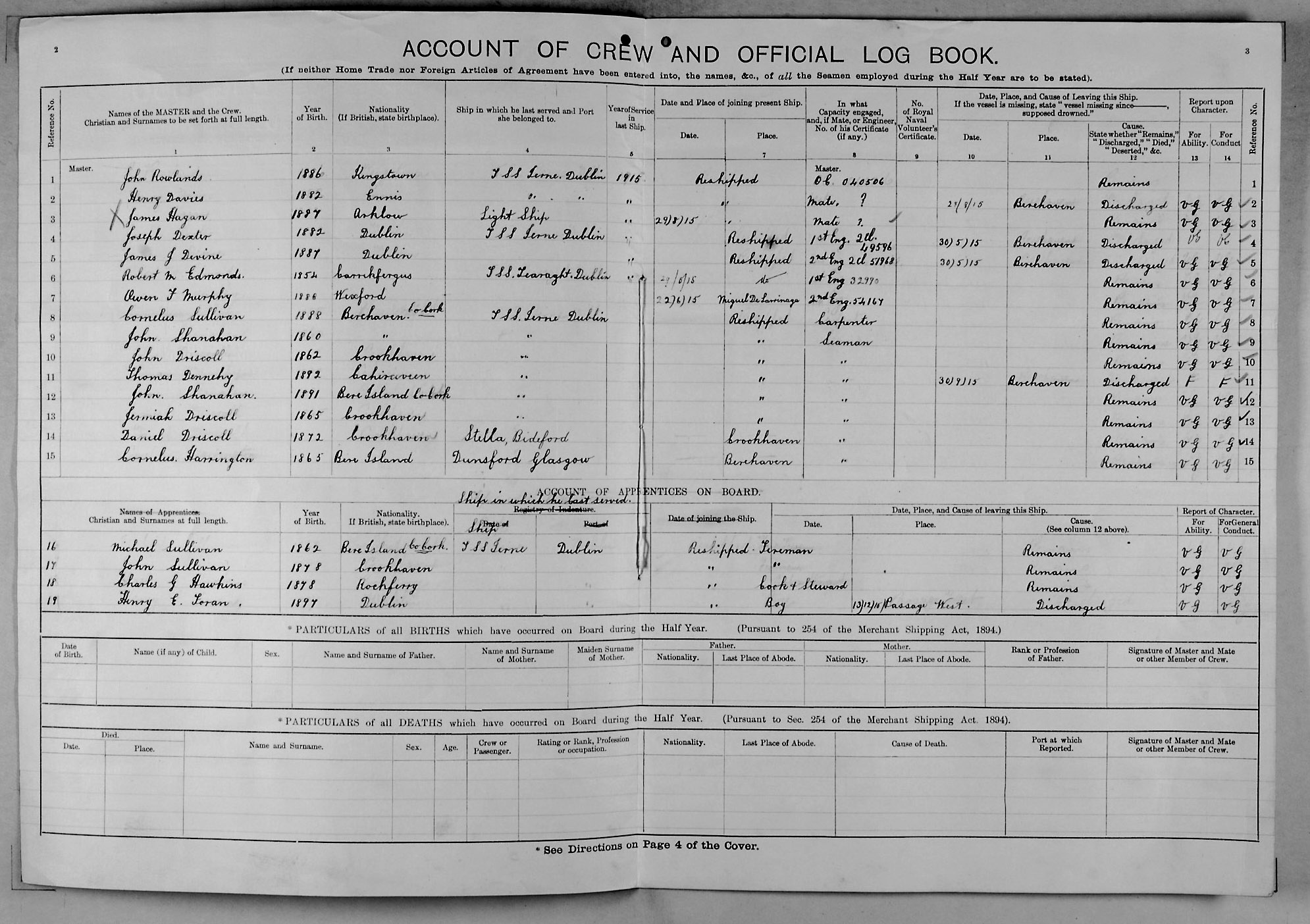 1915 crew list for the vessel 'IERNE'