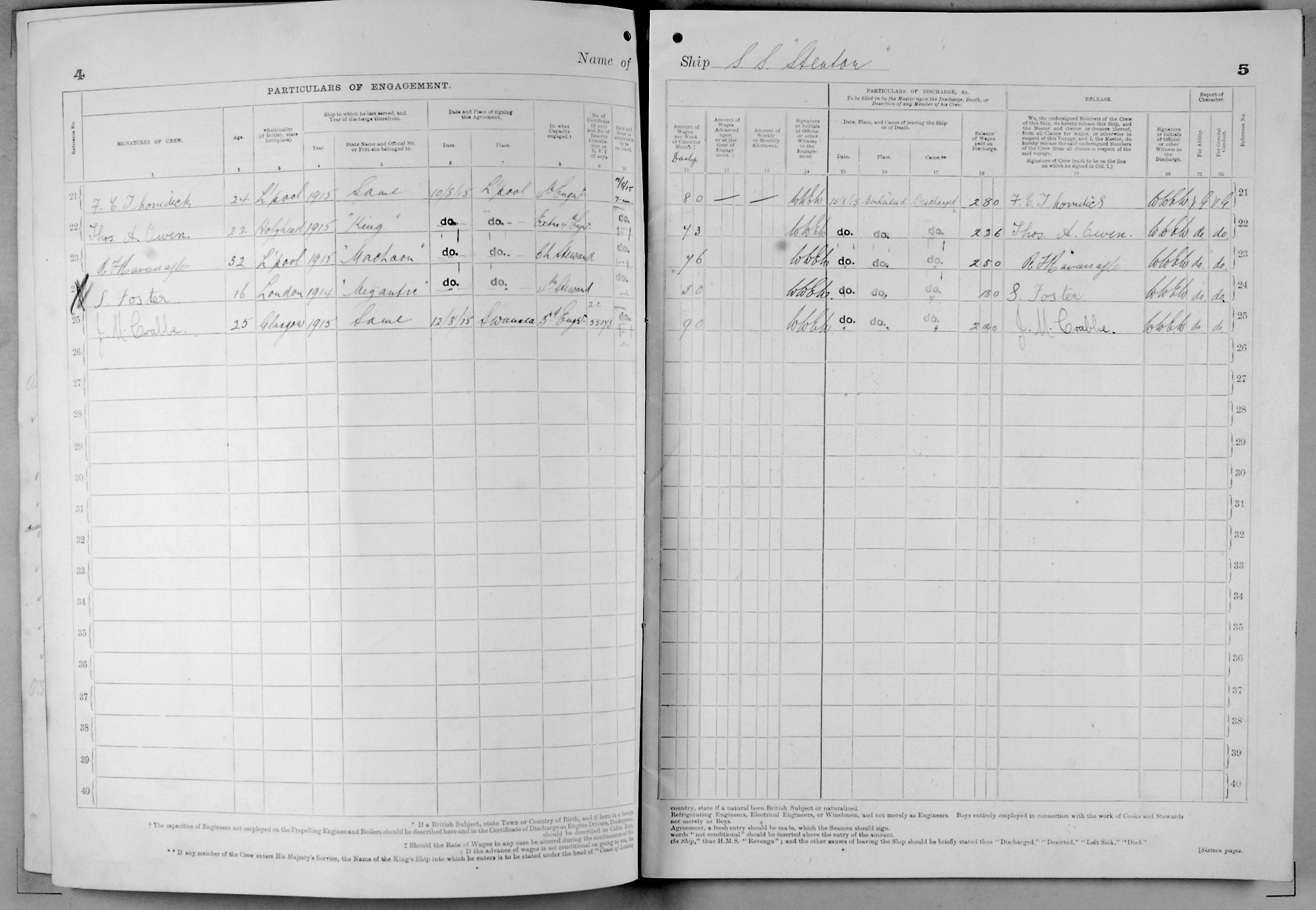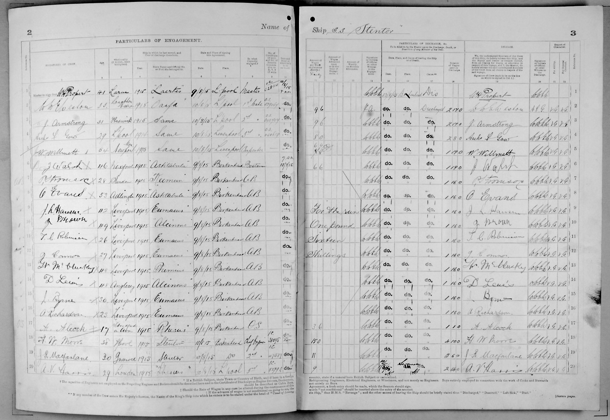 1915 crew list for the vessel 'STENTOR'
