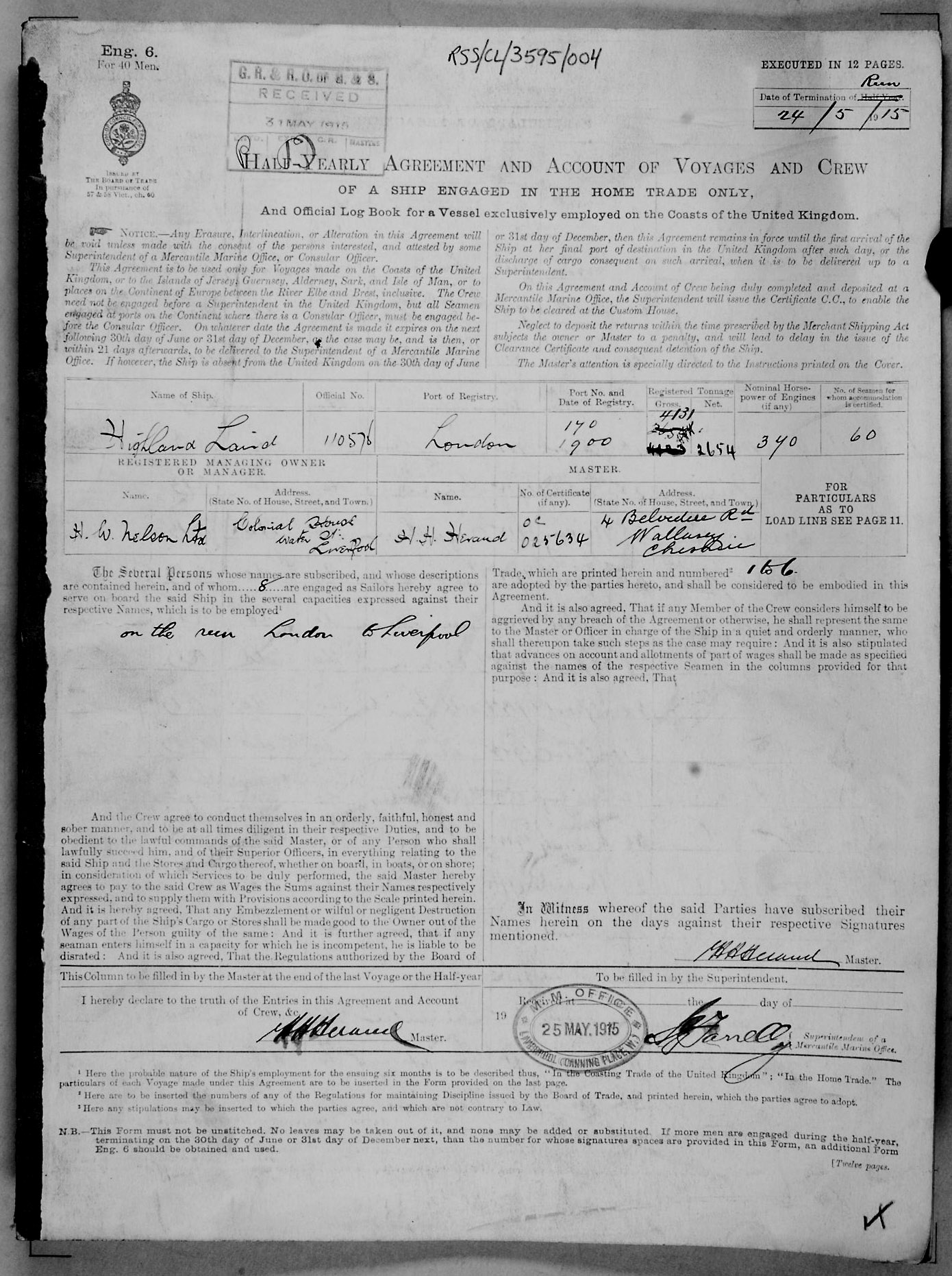 Crew list document for vessel 'HIGHLAND LAIRD'