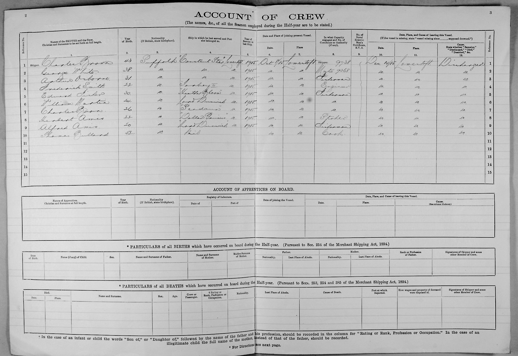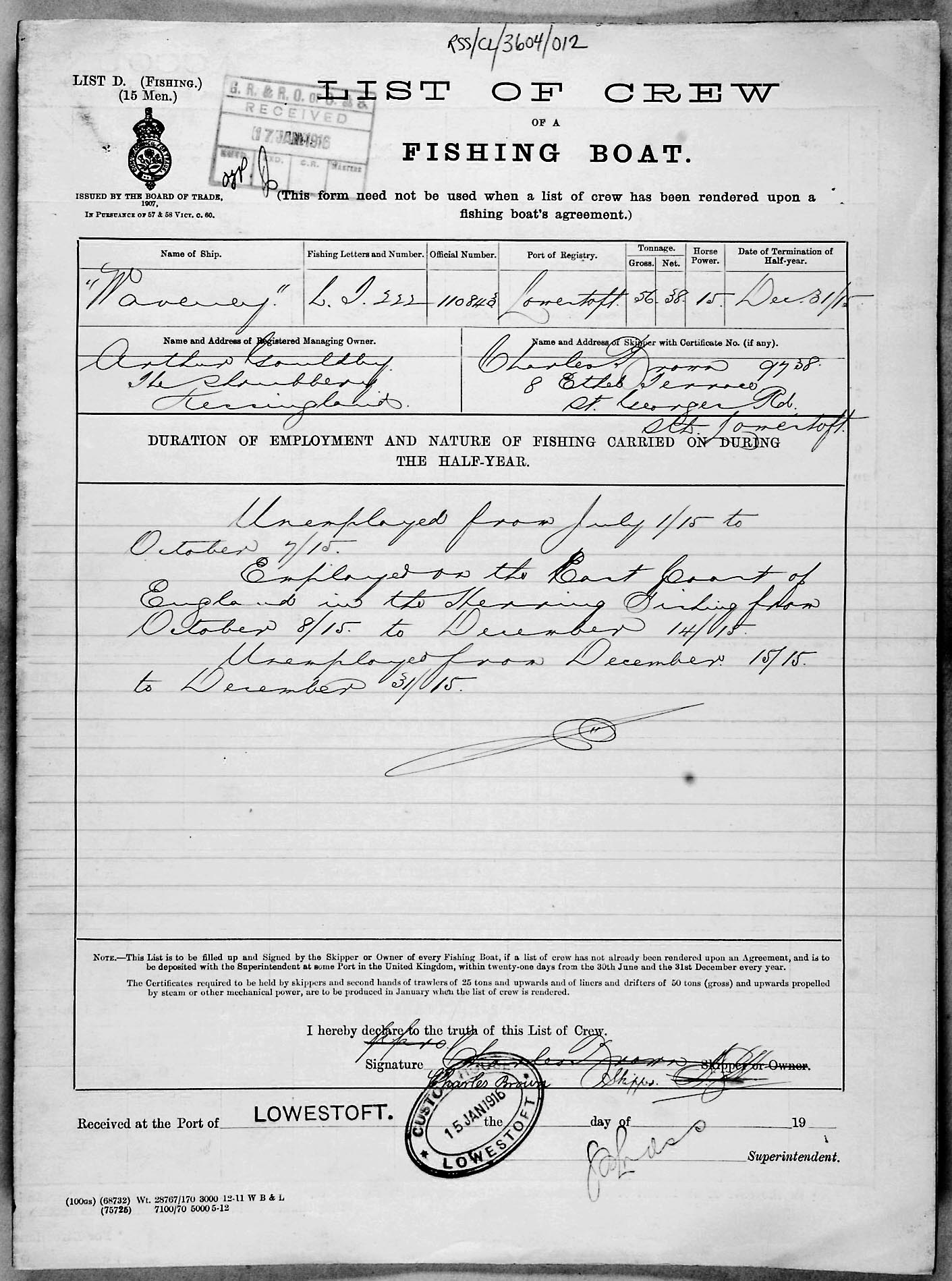 1915 crew list for the vessel 'WAVENEY'