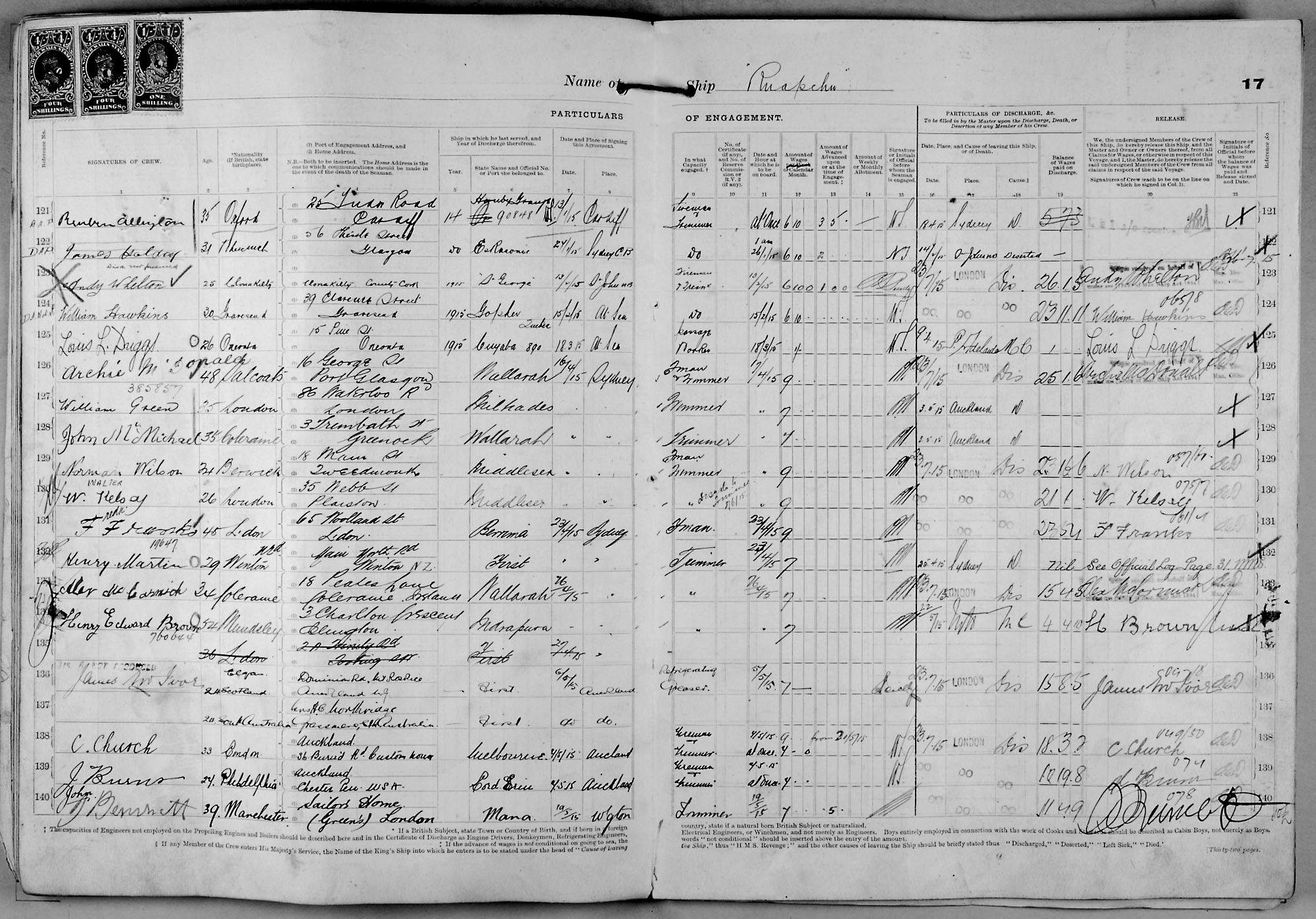 1915 crew list for the vessel 'RUAPEHU'
