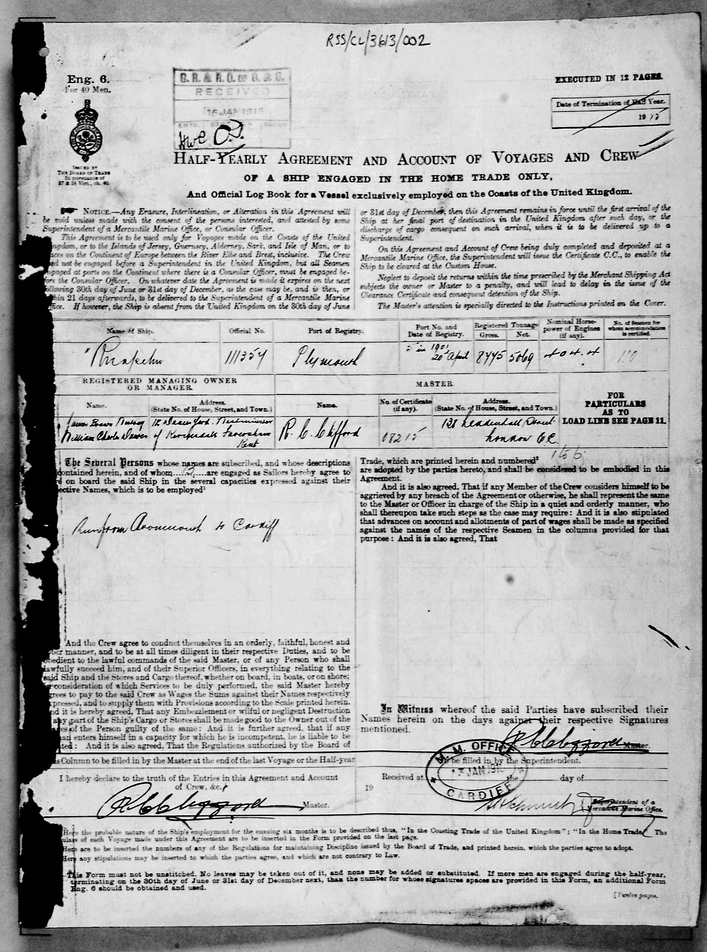 Crew list document for vessel 'RUAPEHU'
