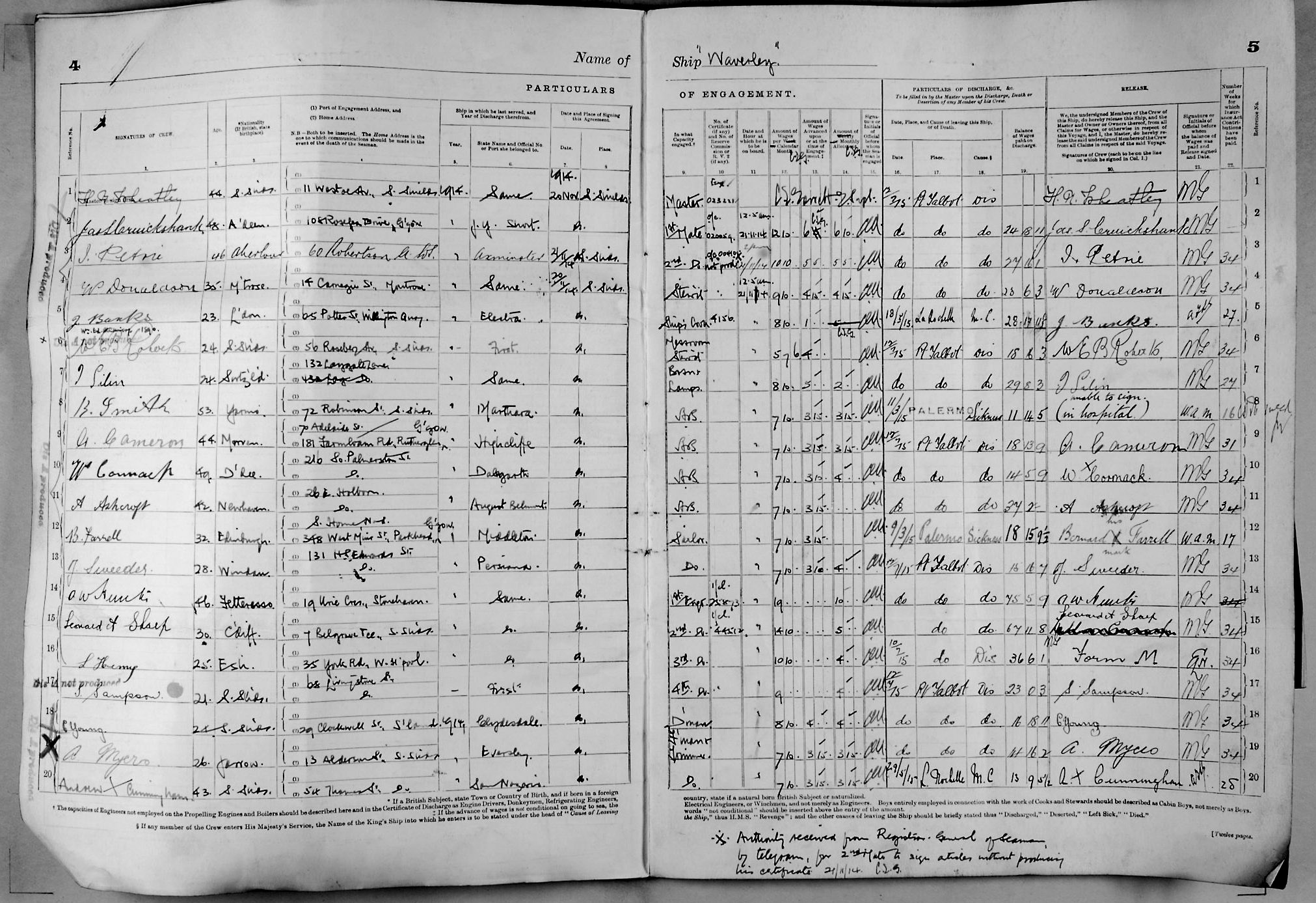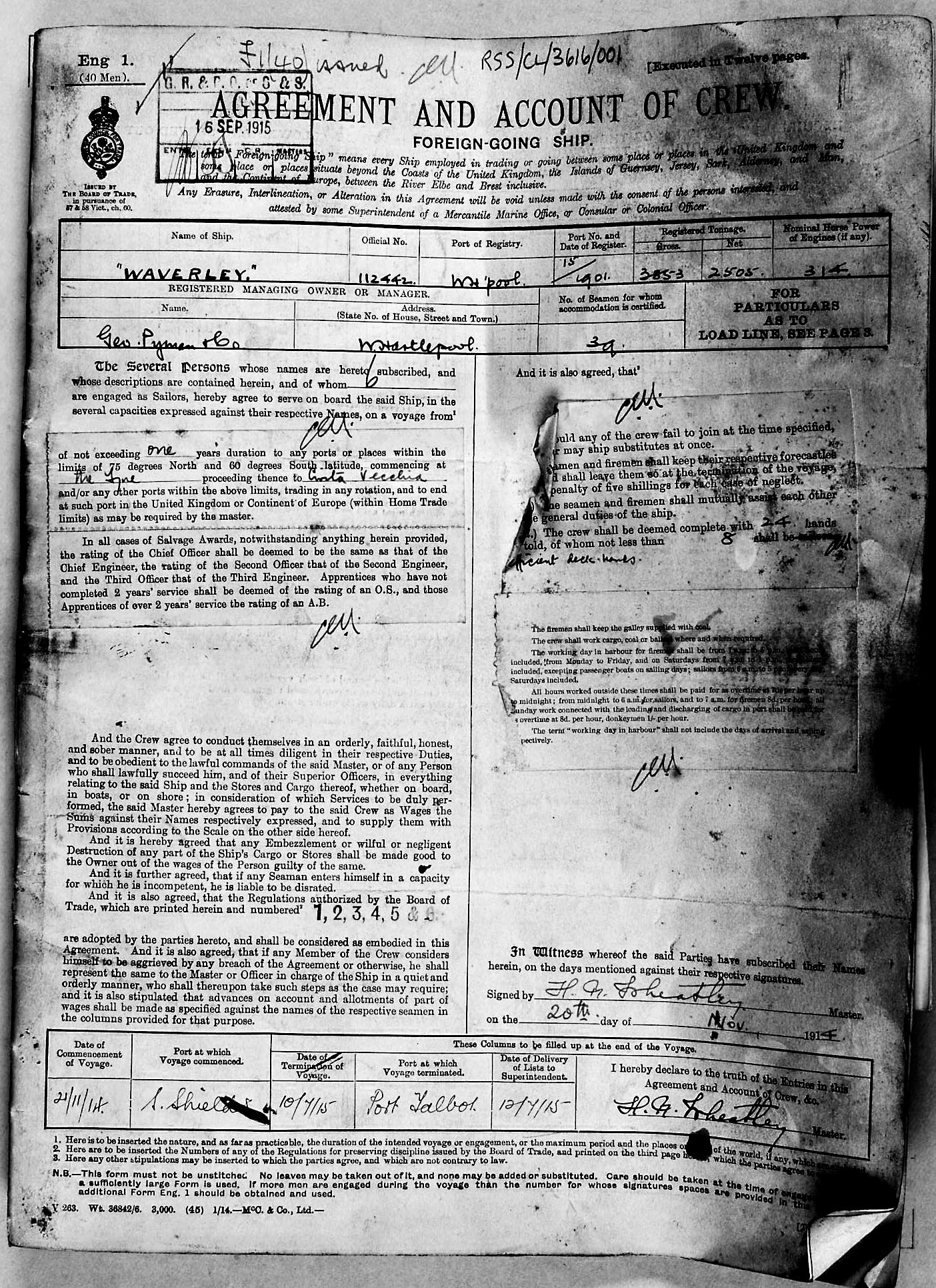 Crew list document for vessel 'WAVERLEY'