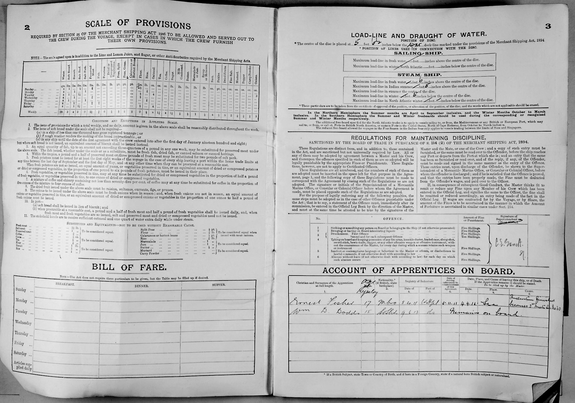 1915 crew list for the vessel 'WAVERLEY'