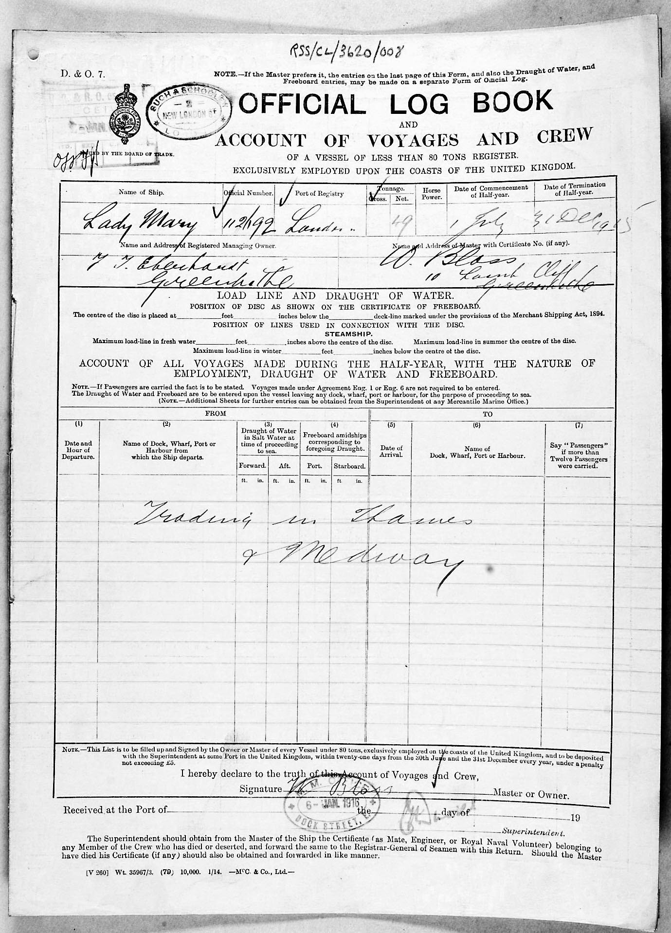 1915 crew list for the vessel 'LADY MARY'