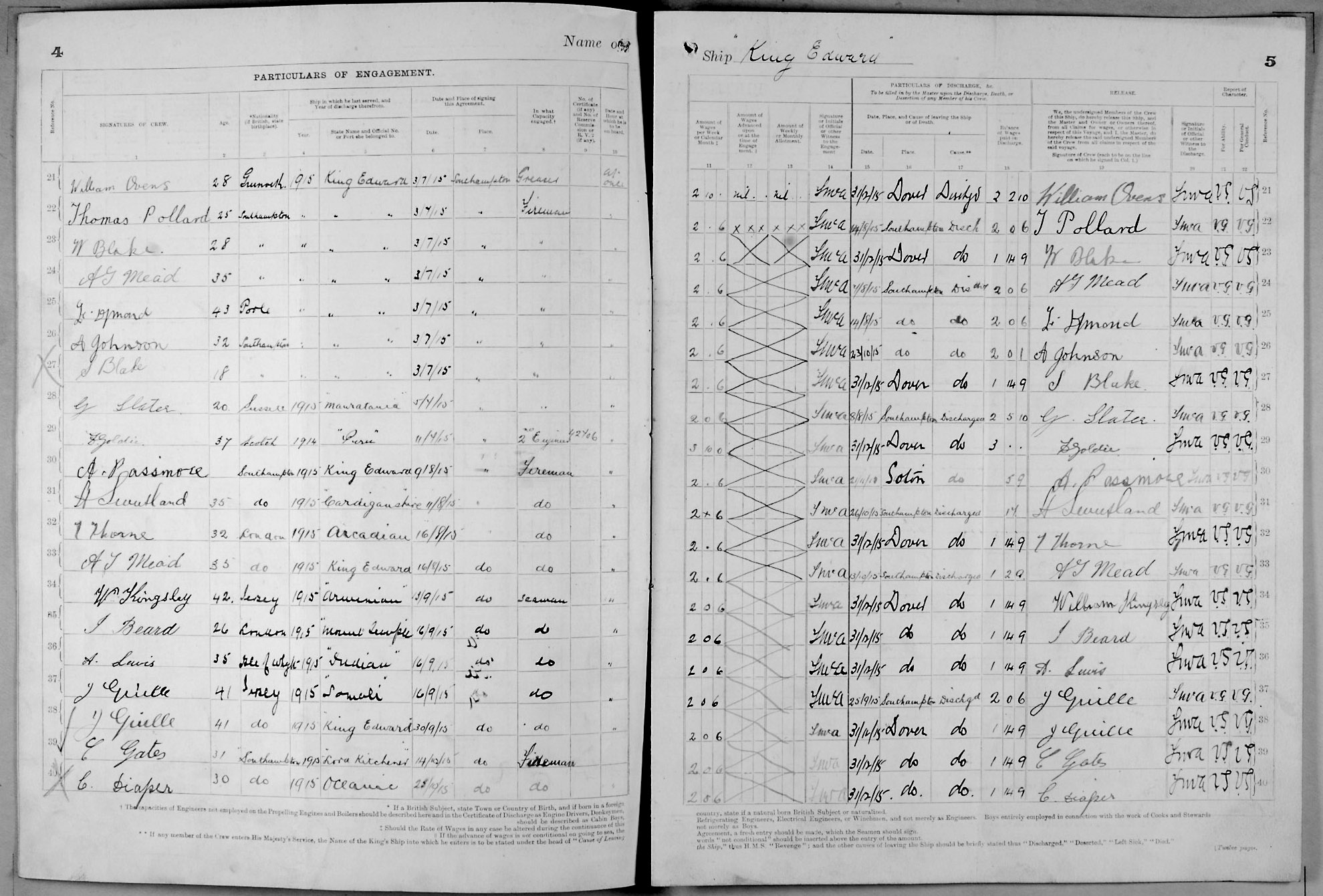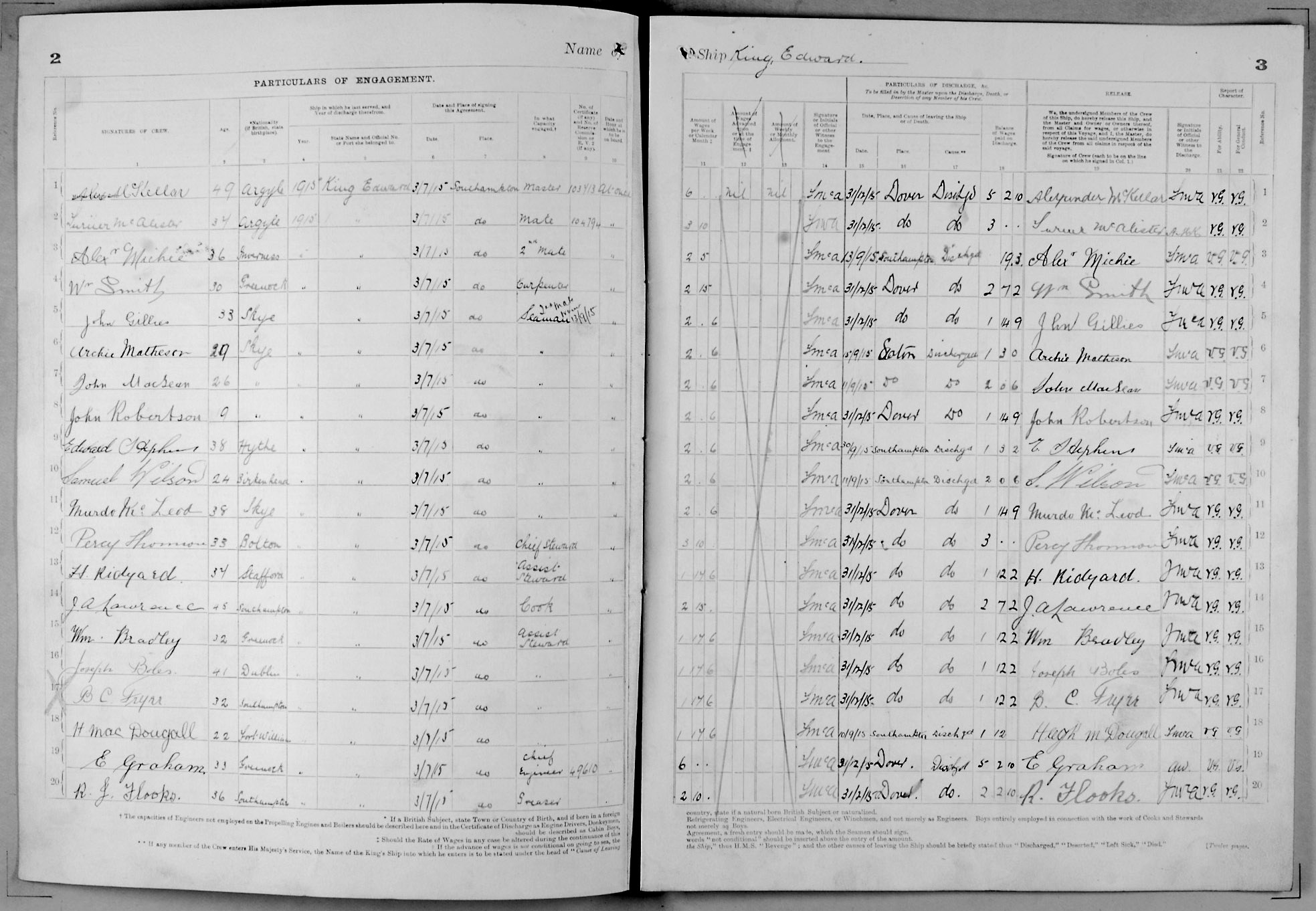 1915 crew list for the vessel 'KING EDWARD'