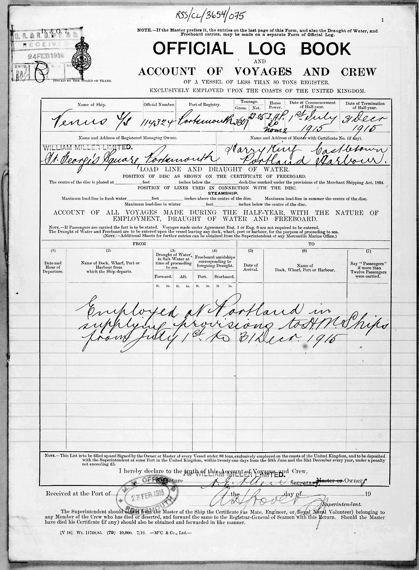 1915 crew list for the vessel 'VENUS'