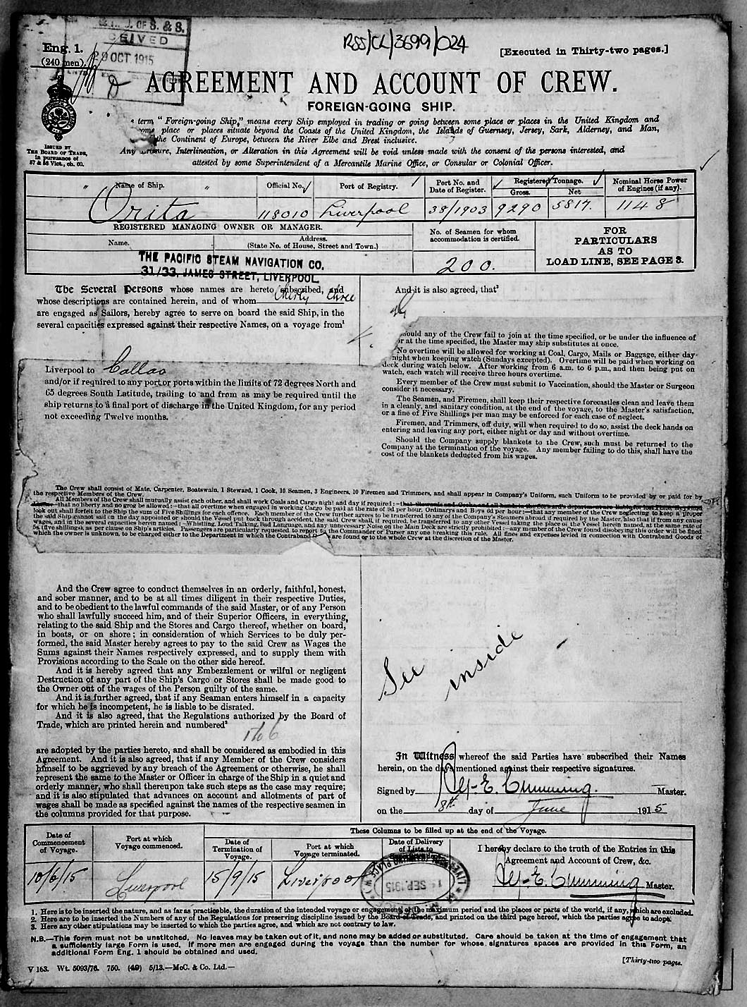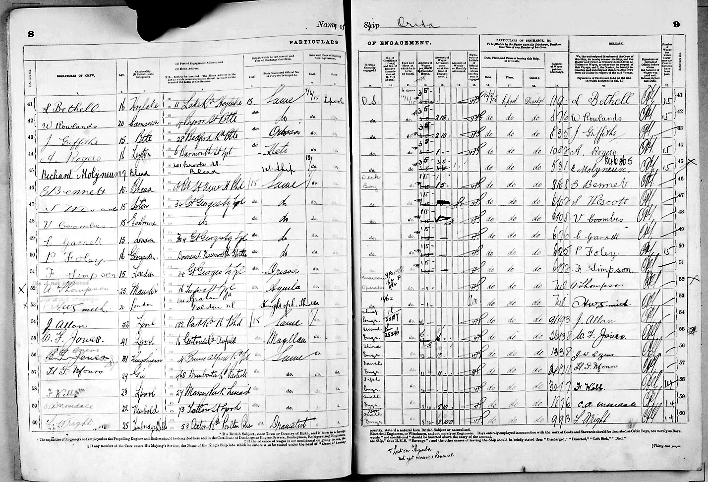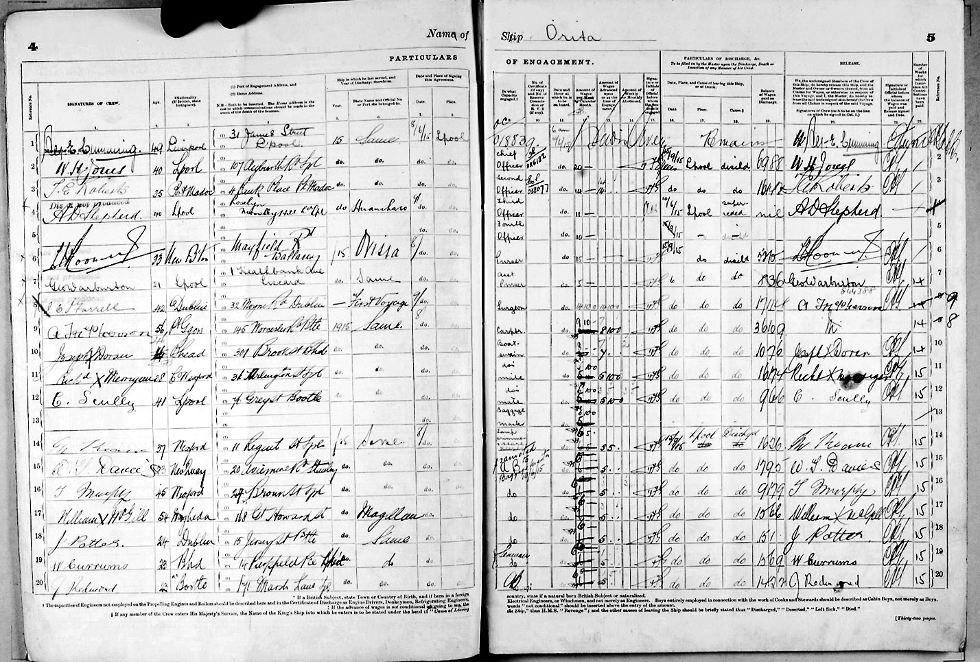 1915 crew list for the vessel 'ORITA'
