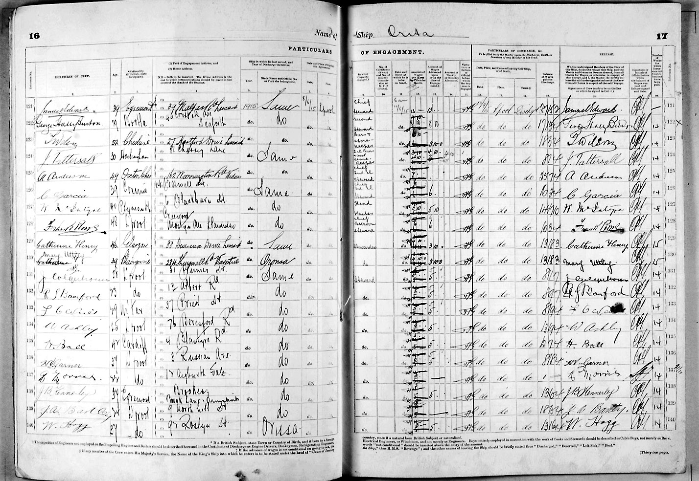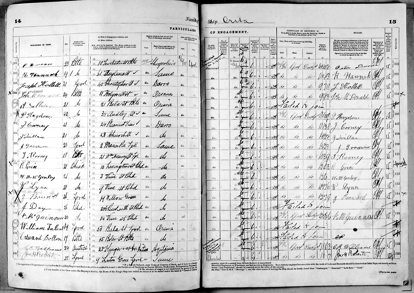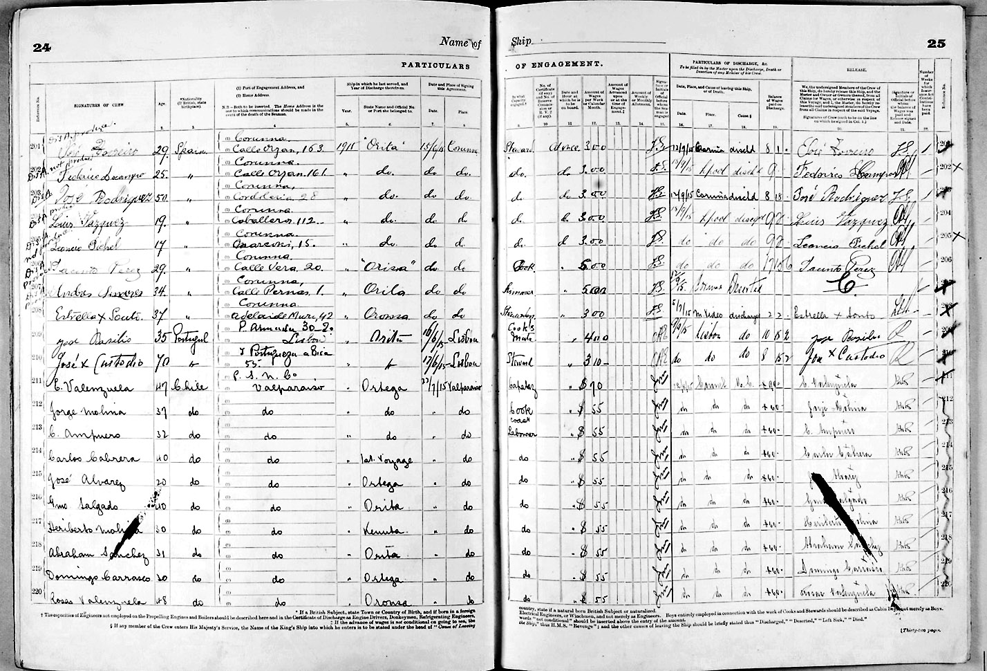 1915 crew list for the vessel 'ORITA'