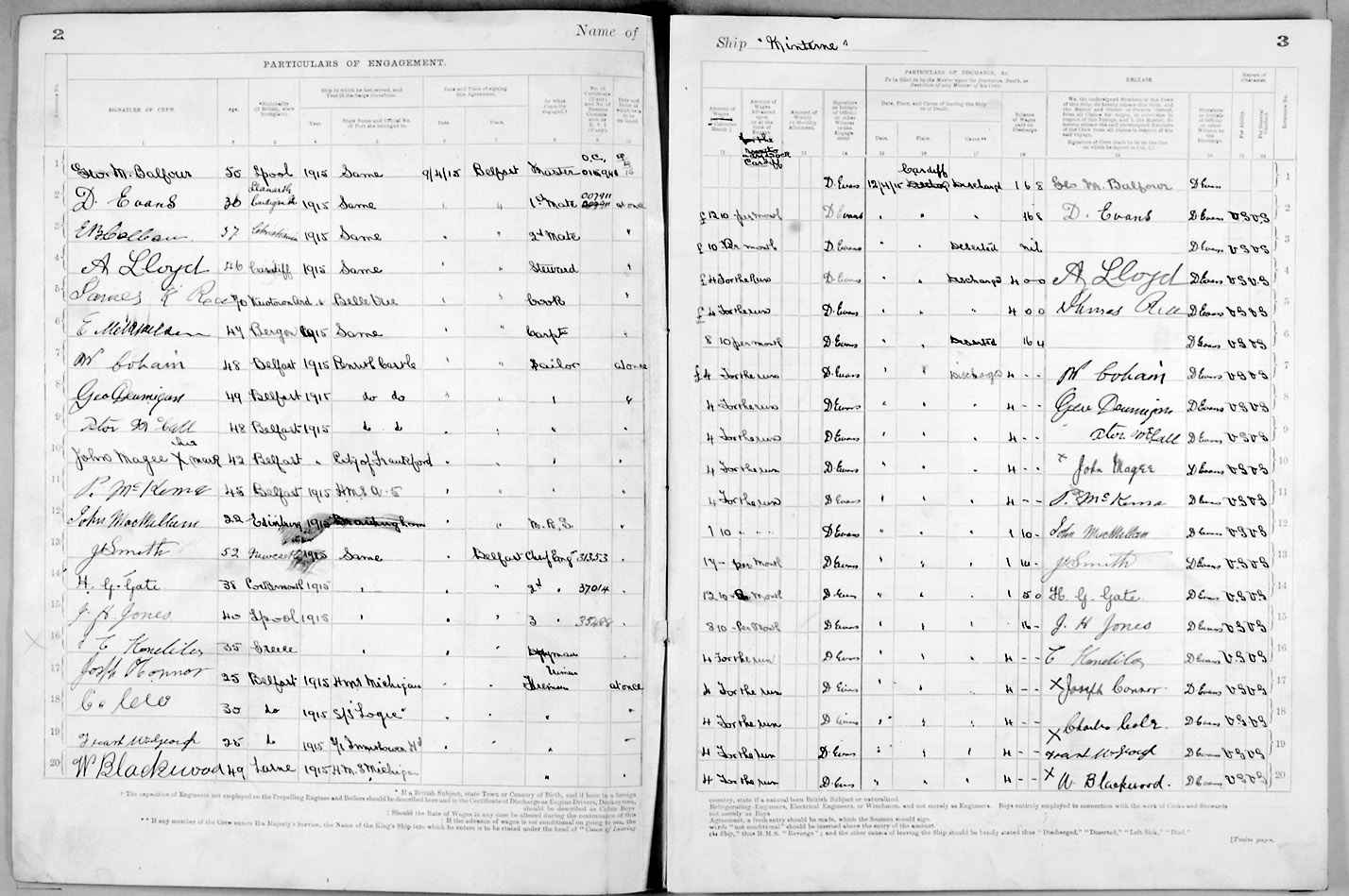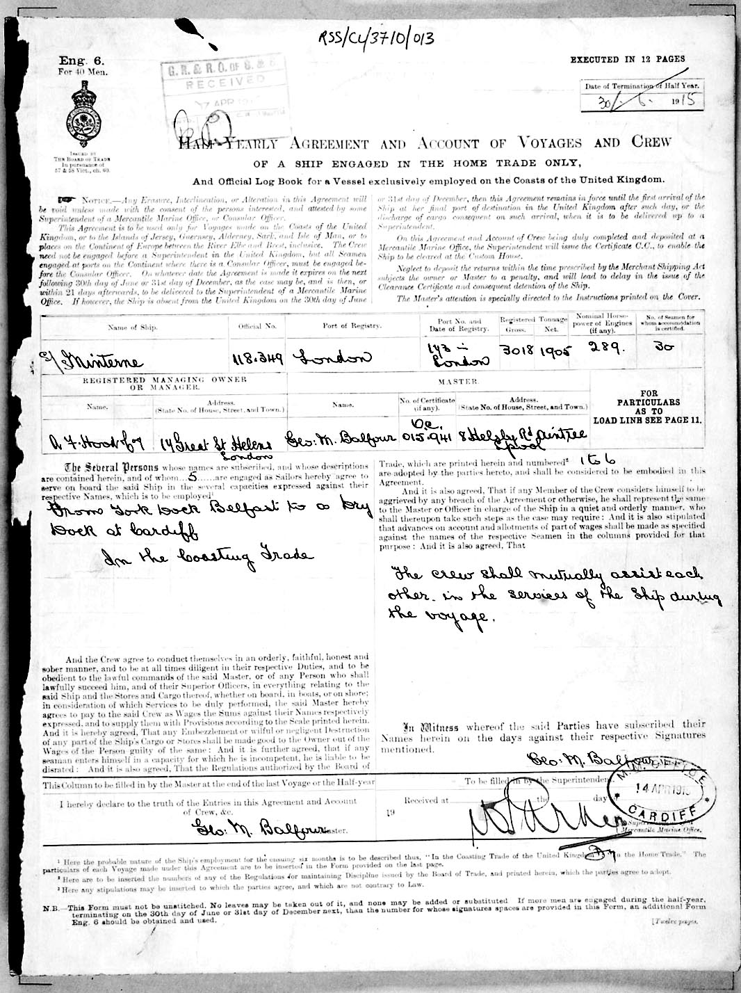 1915 crew list for the vessel 'MINTERNE'