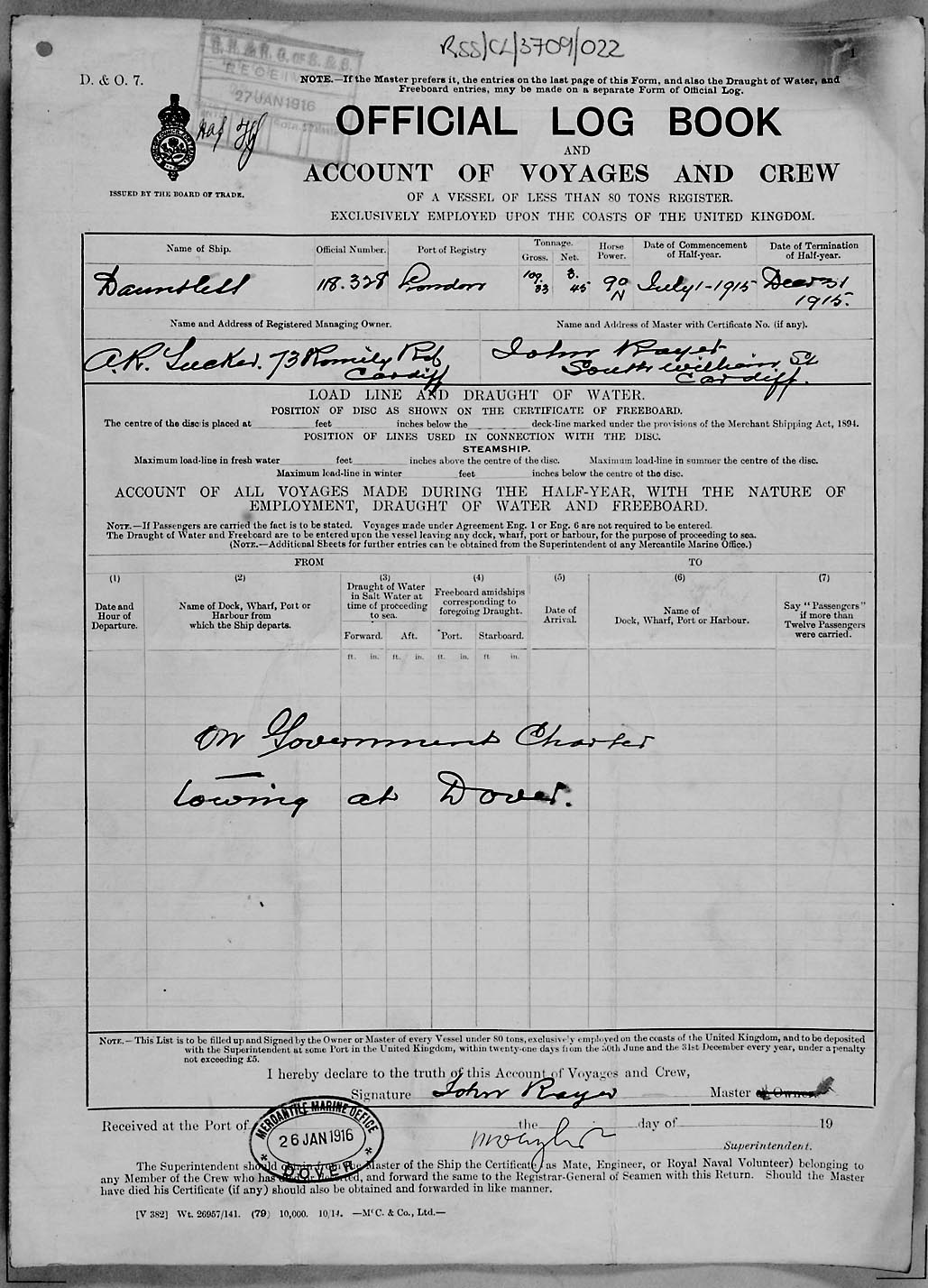 1915 crew list for the vessel 'DAUNTLESS'