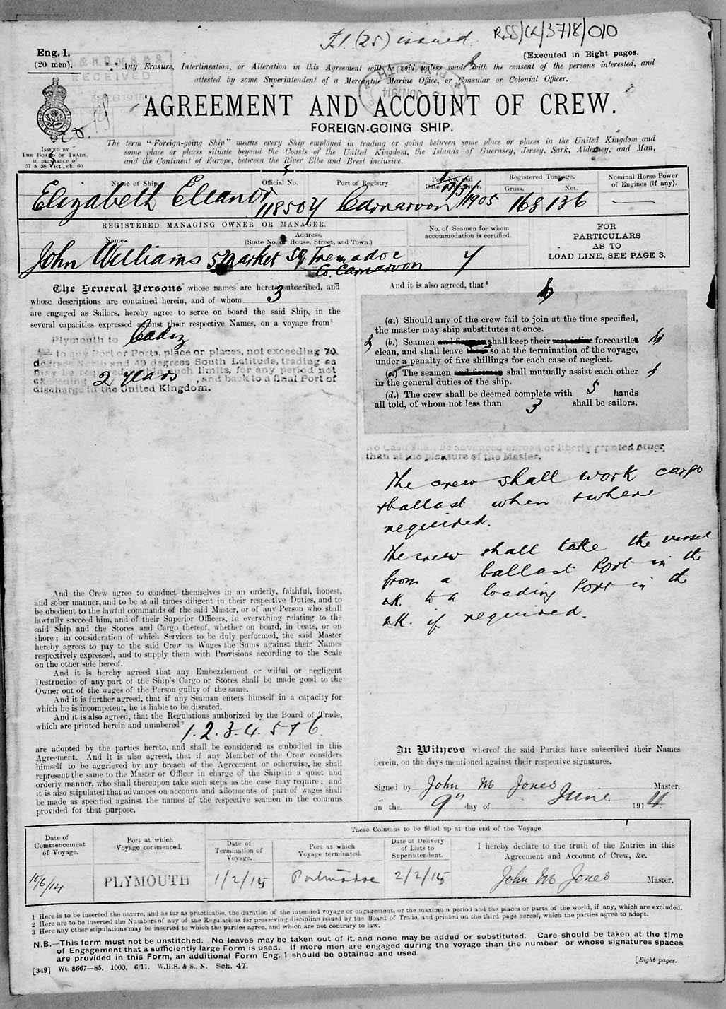 1915 crew list for the vessel 'ELIZABETH ELEANOR'