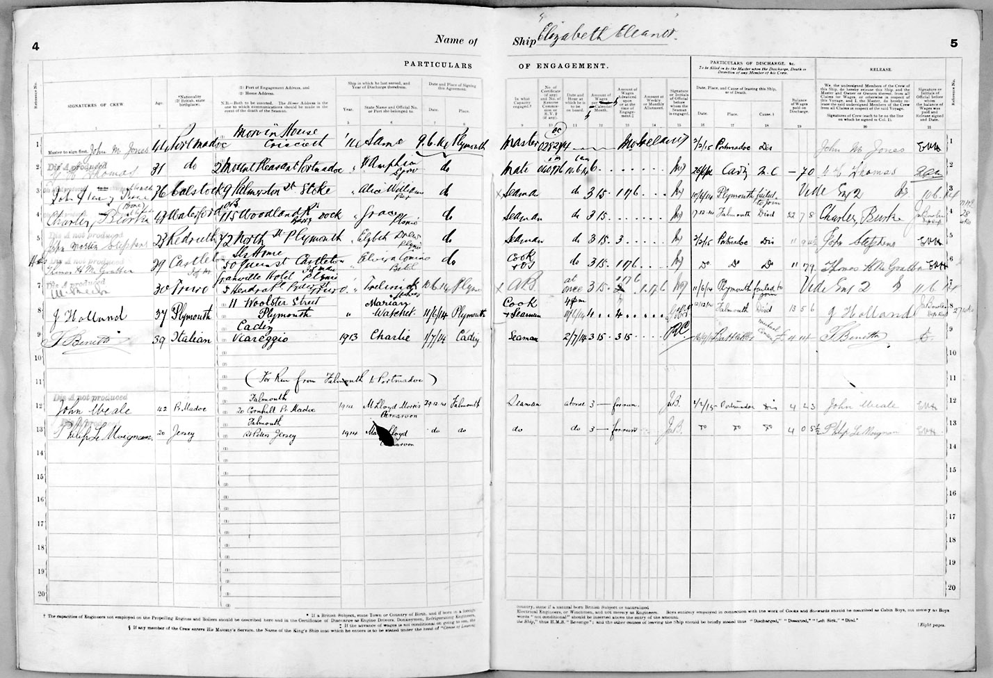Crew list document for vessel 'ELIZABETH ELEANOR'