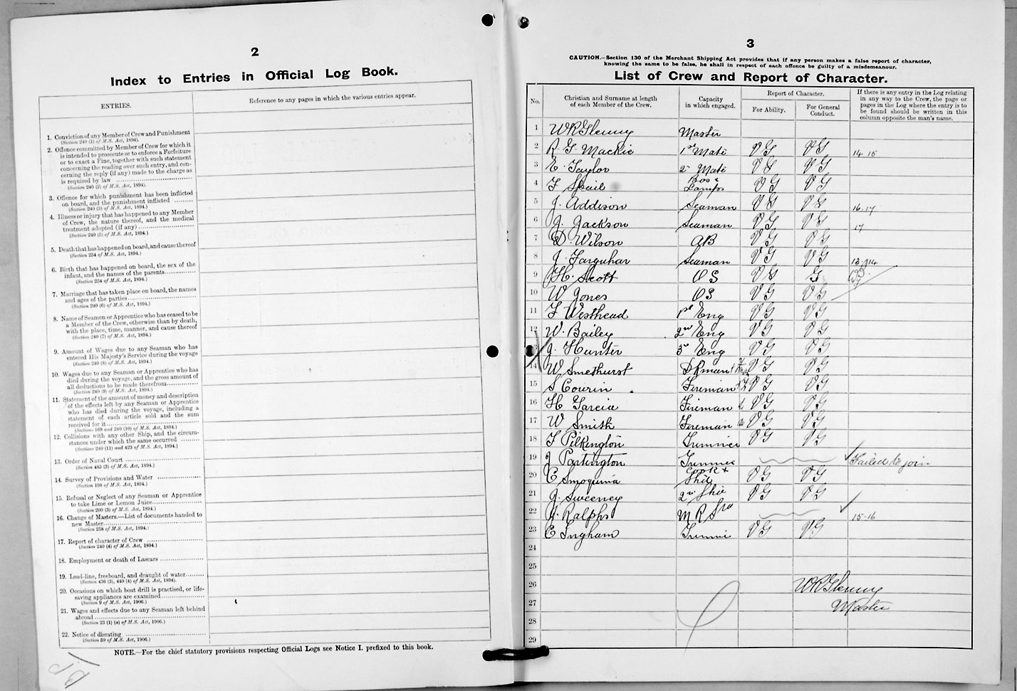 Crew list document for vessel 'ELLESMERE'