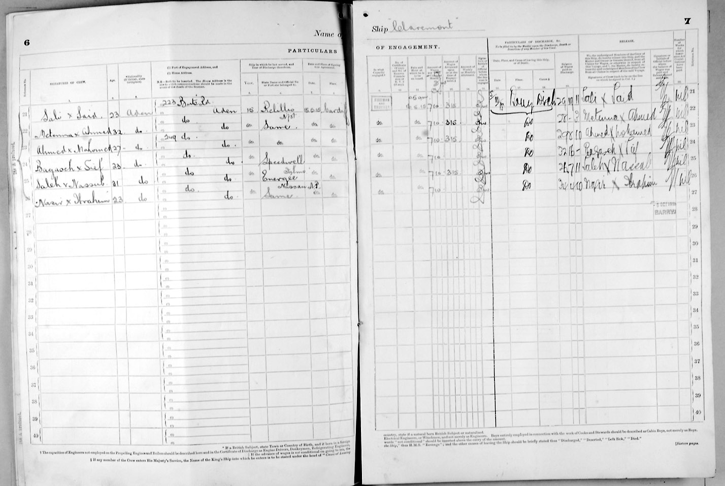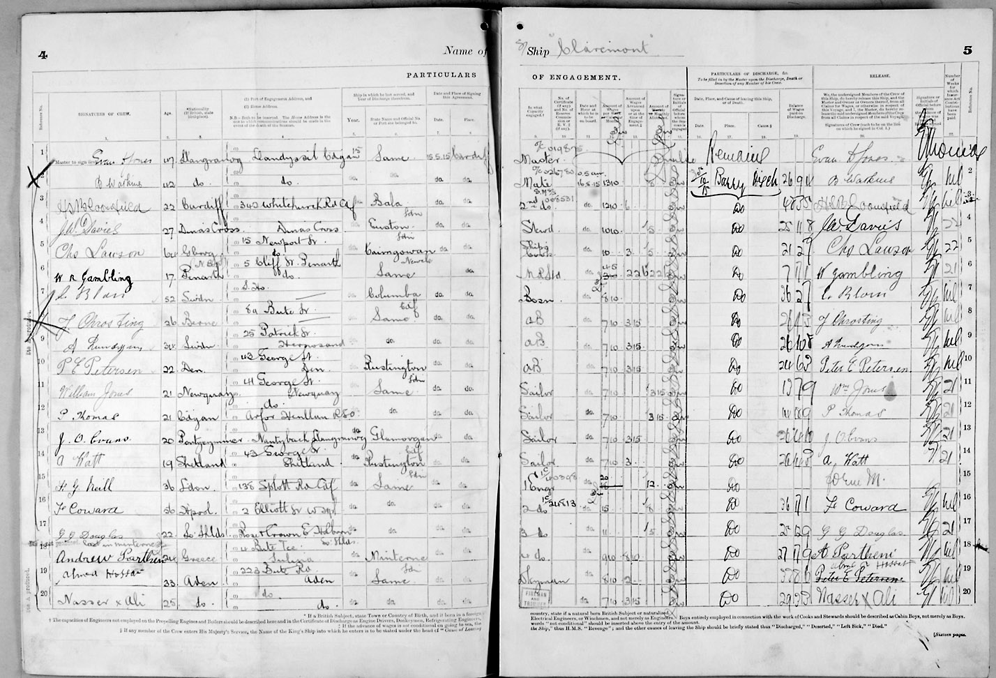 Crew list document for vessel 'CLAREMONT'