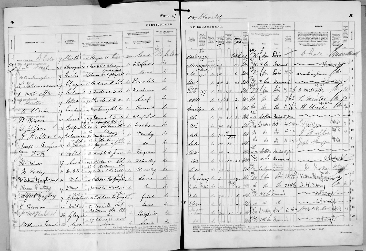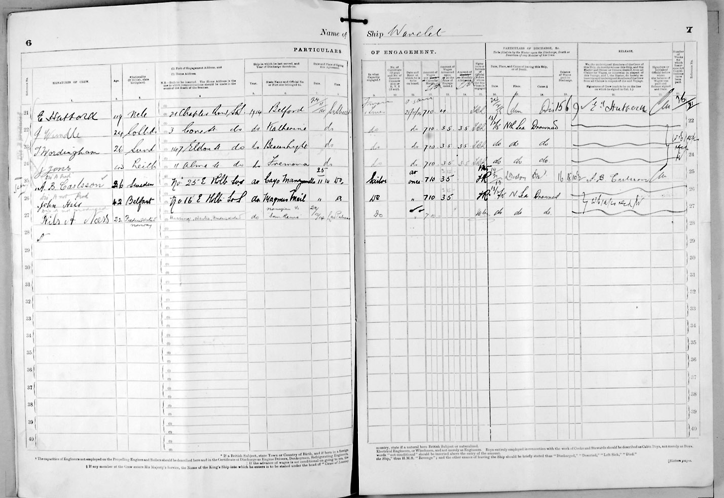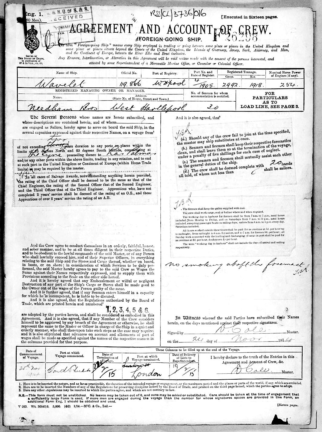Crew list document for vessel 'WAVELET'