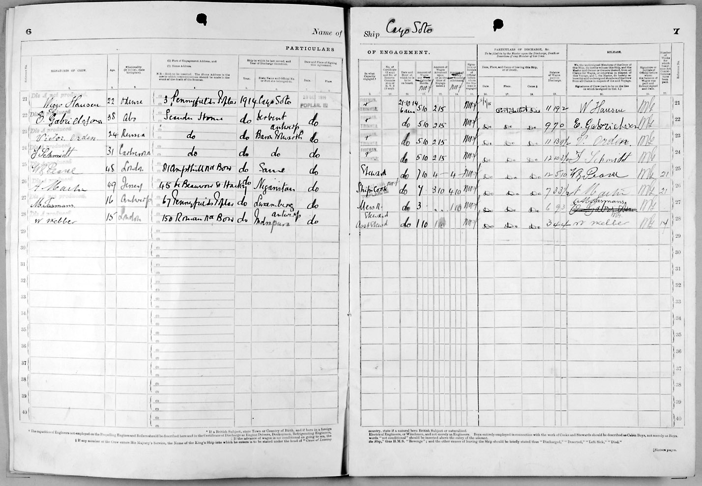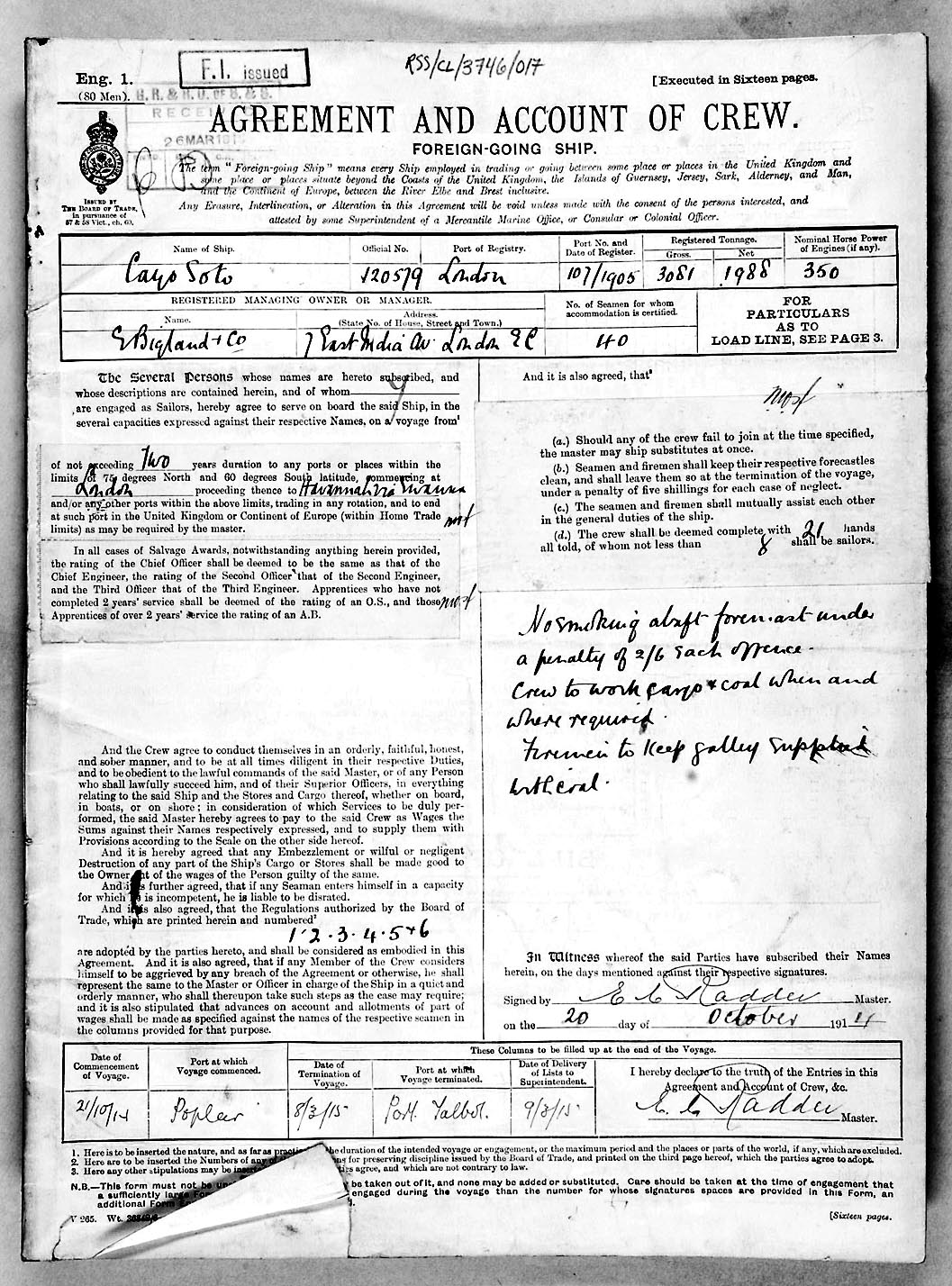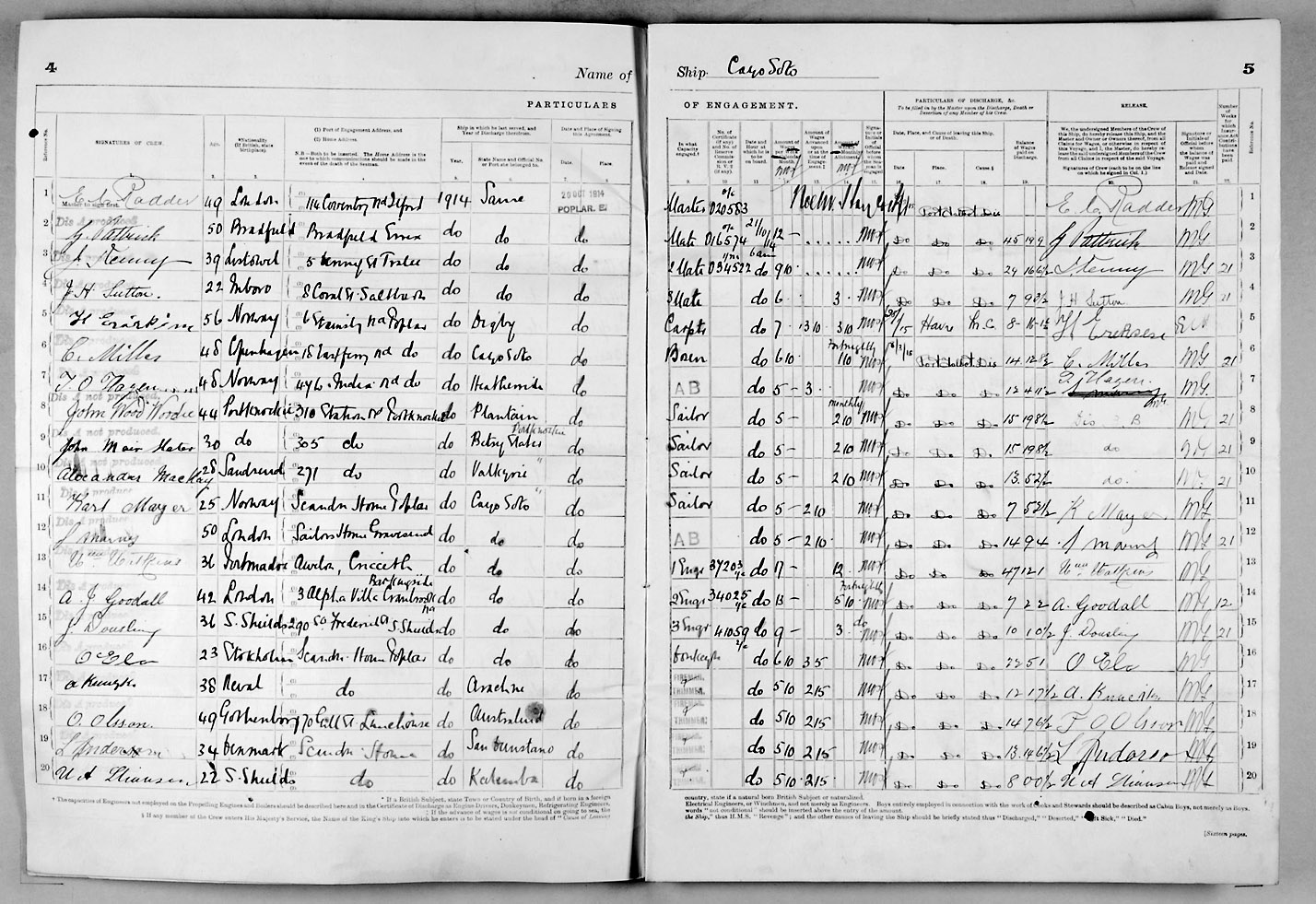 1915 crew list for the vessel 'CAYO SOTO'