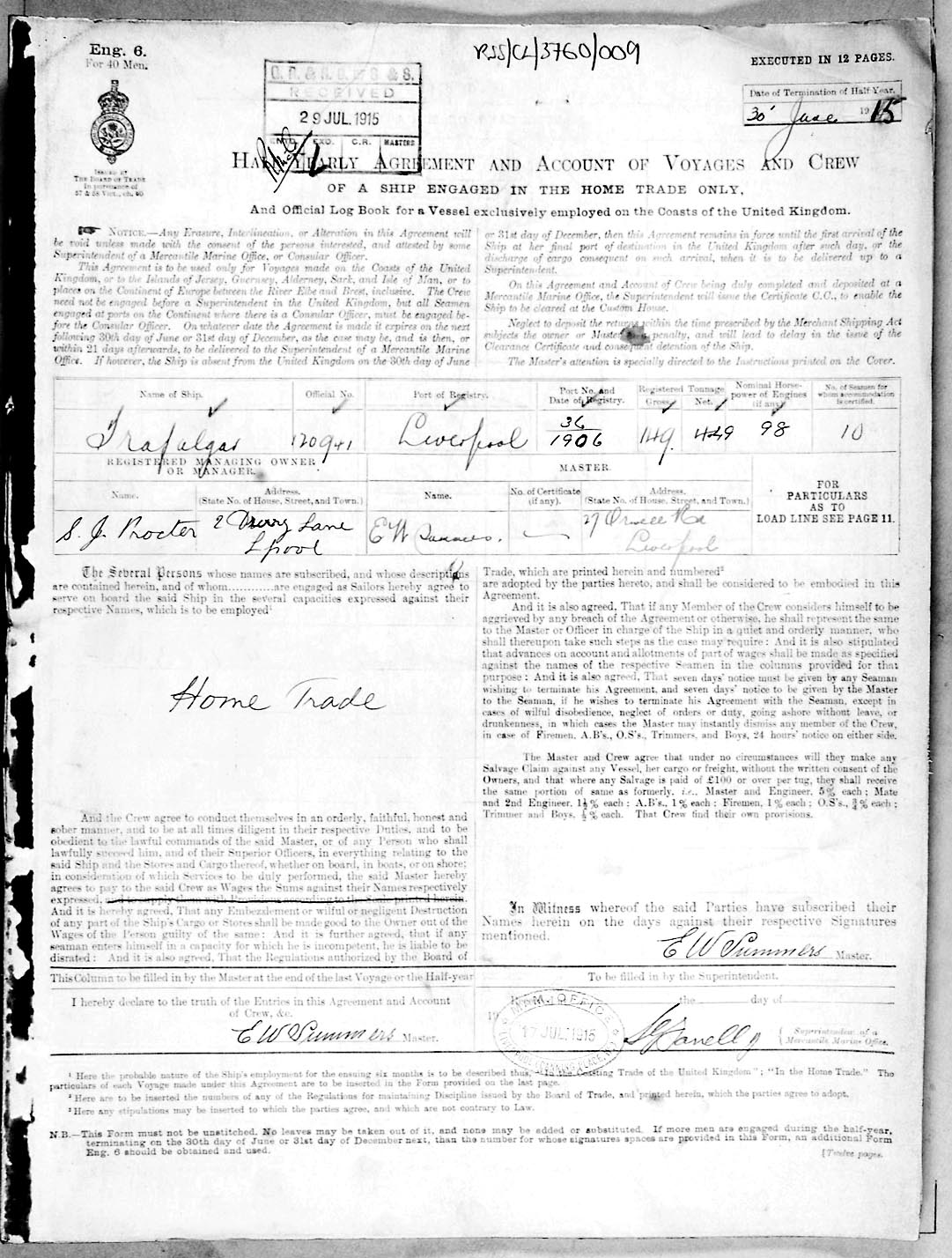 Crew list document for vessel 'TRAFALGAR'