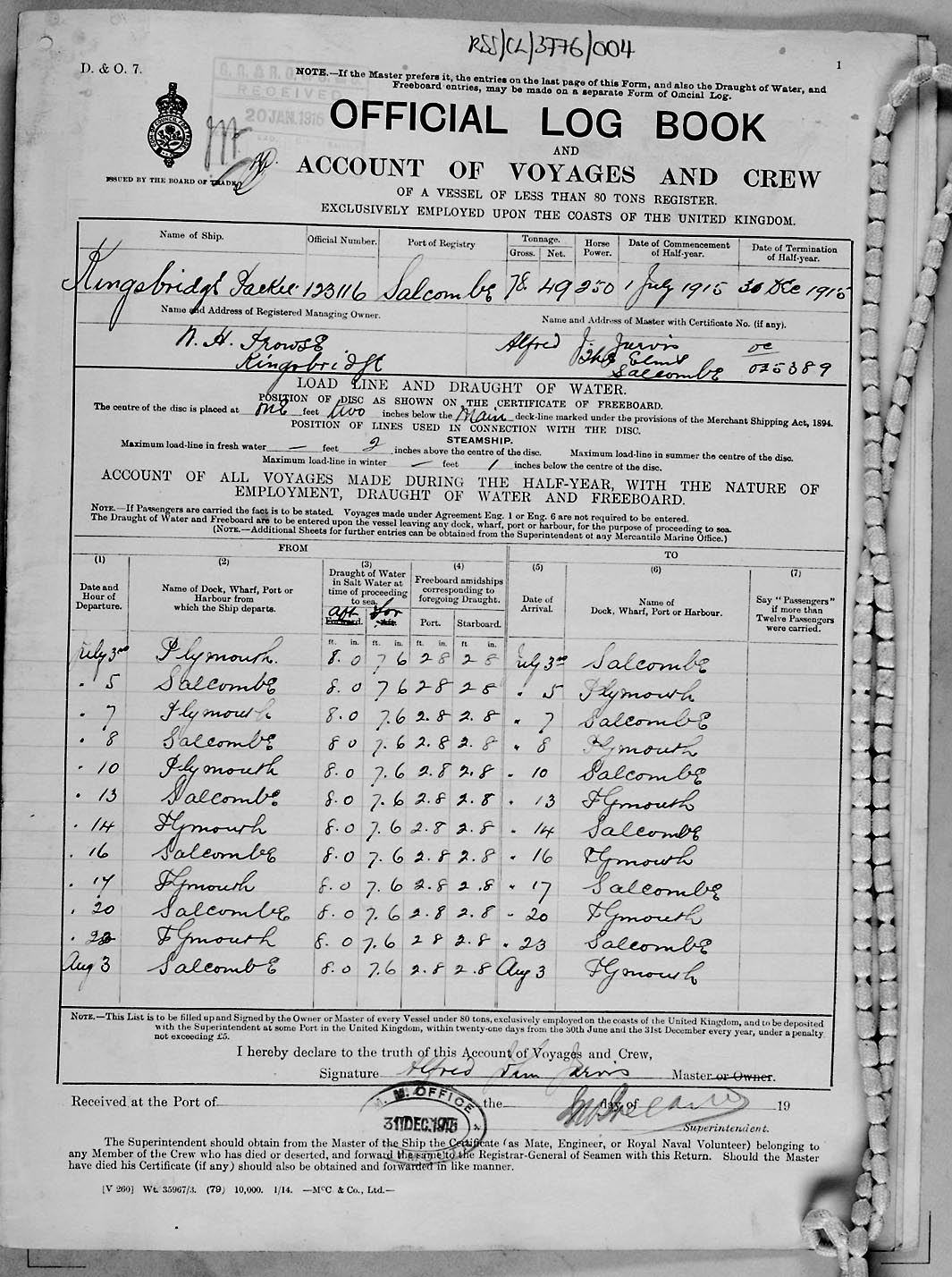 1915 crew list for the vessel 'KINGSBRIDGE PACKET'