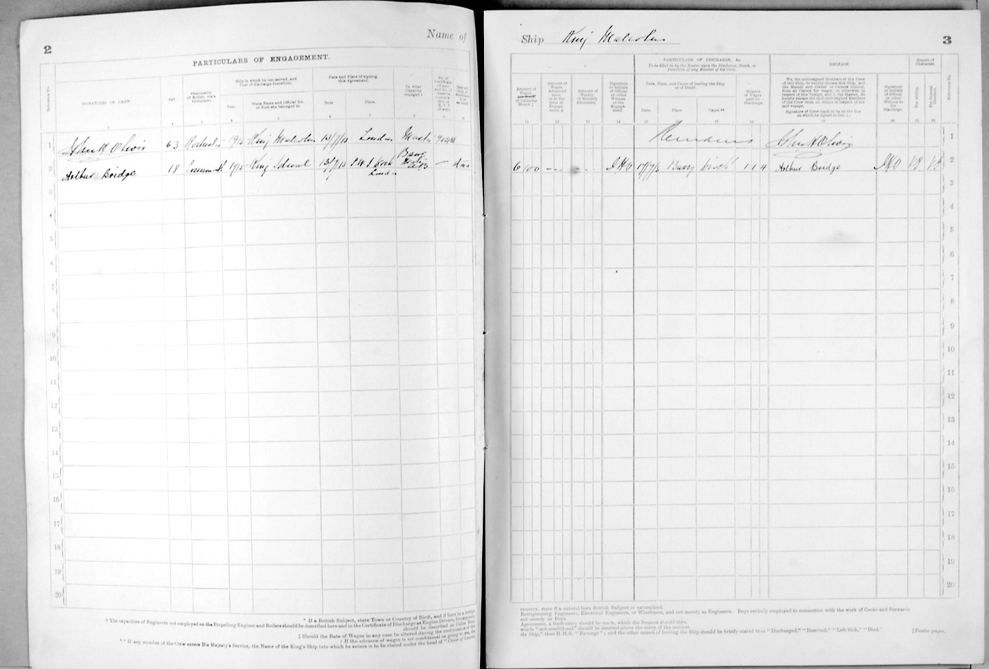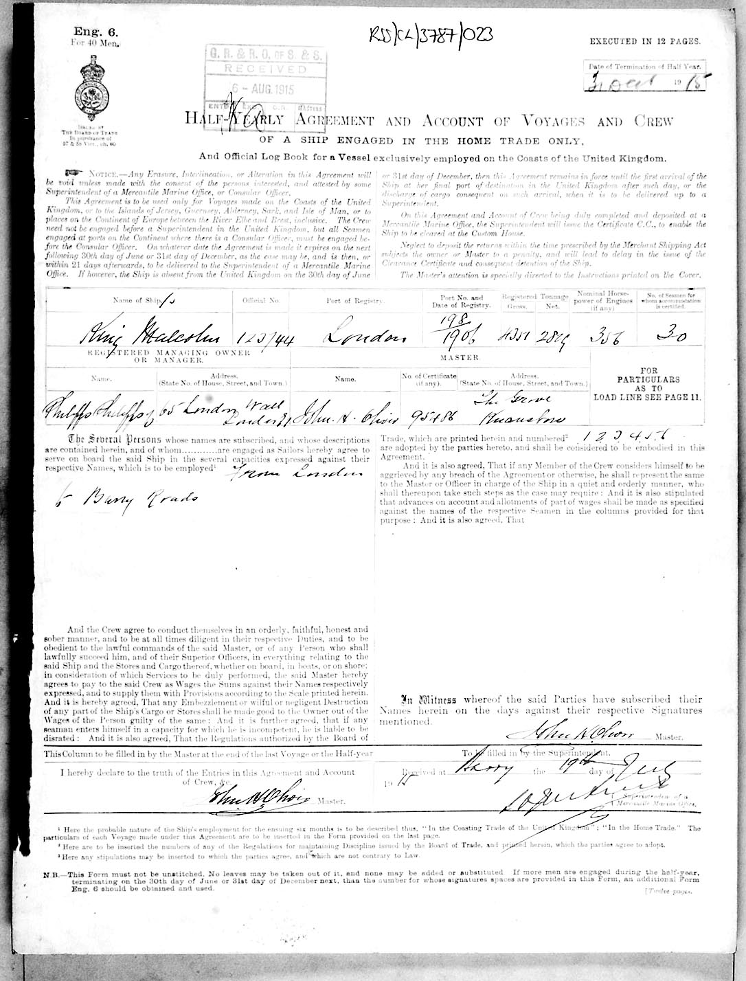 Crew list document for vessel 'KING MALCOLM'