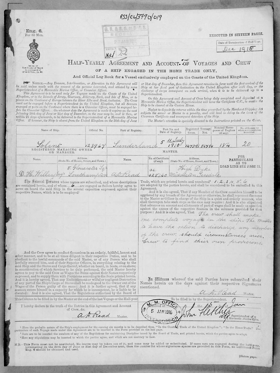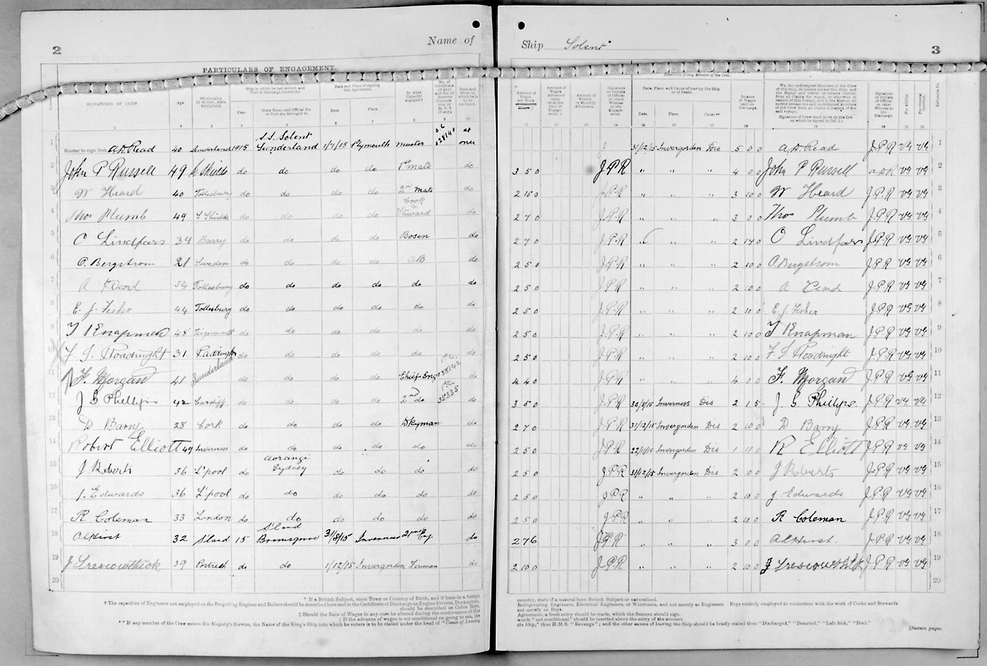 Crew list document for vessel 'SOLENT'