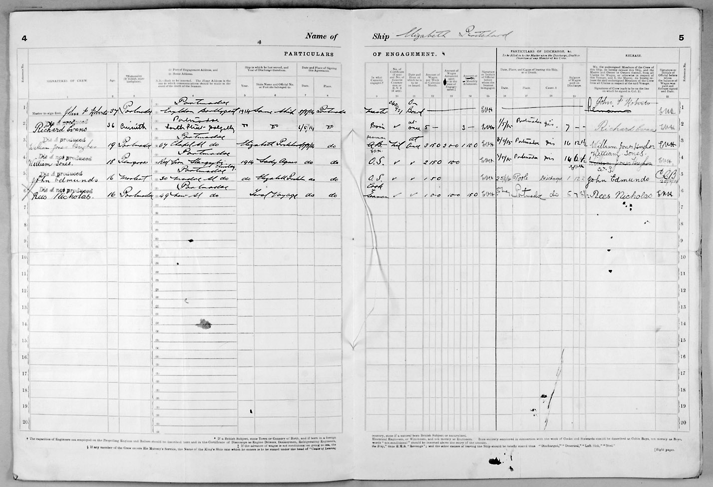 Crew list document for vessel 'ELIZABETH PRITCHARD'