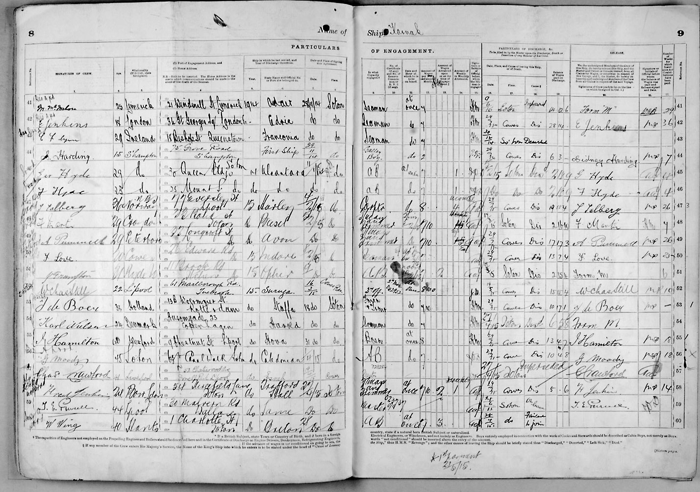 1915 crew list for the vessel 'KARNAK'