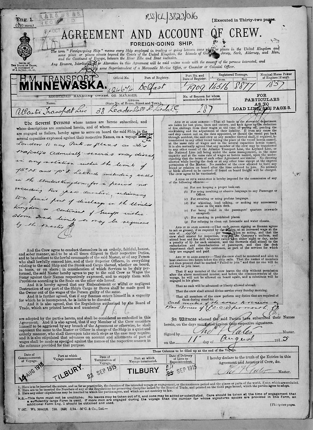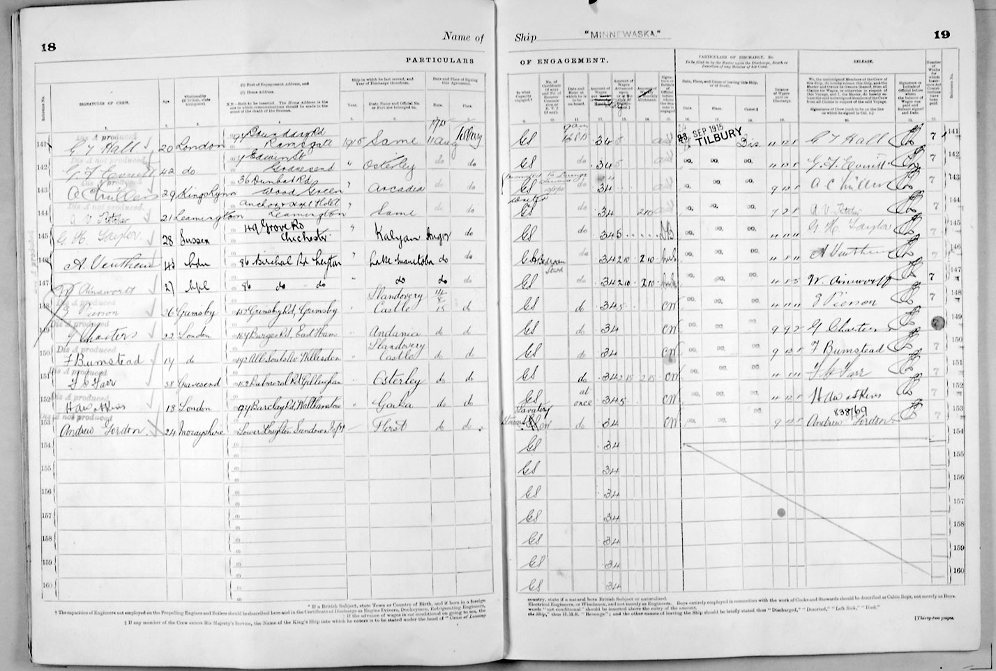 Crew list document for vessel 'MINNEWASKA'
