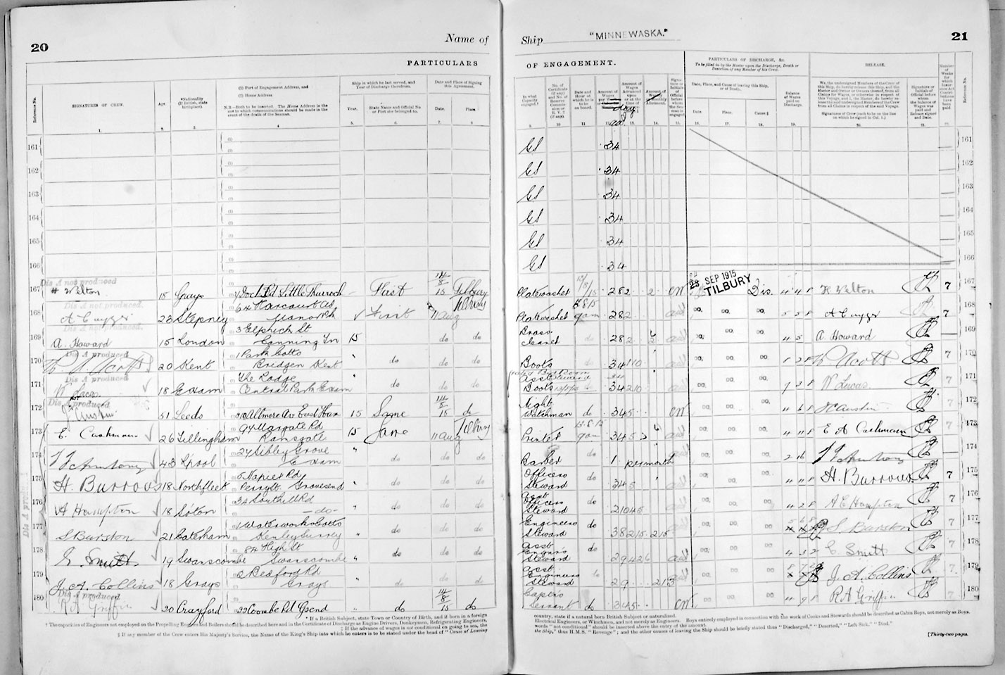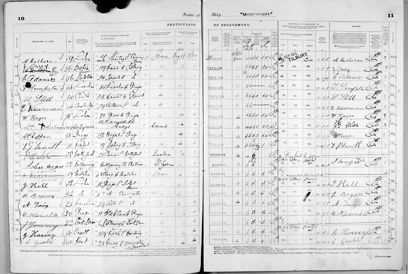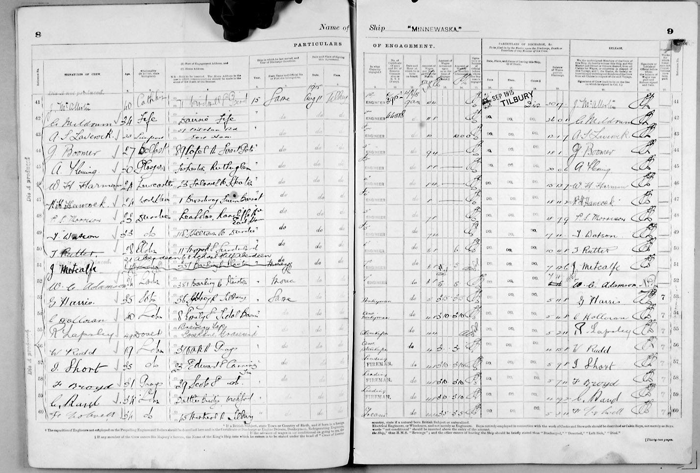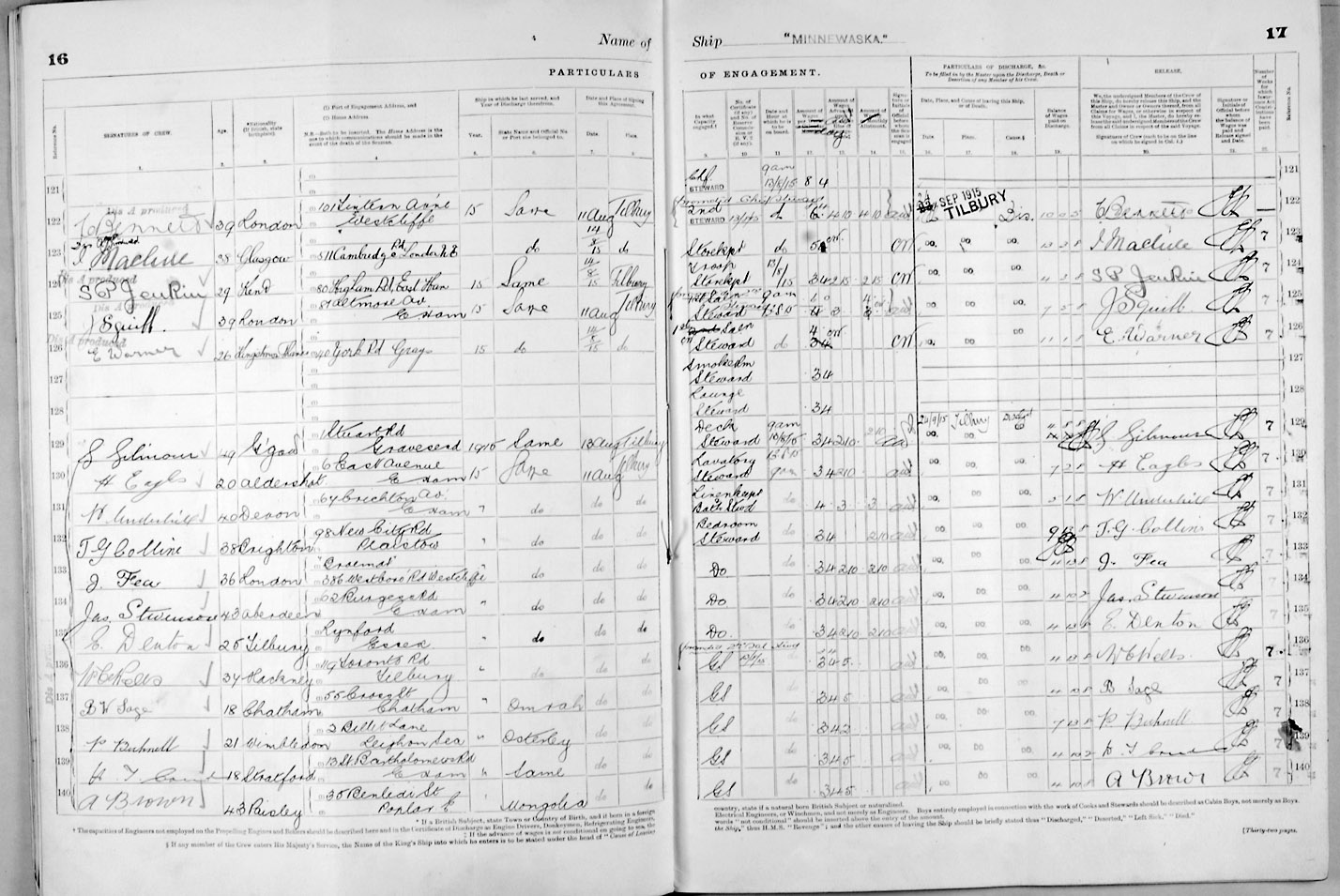 1915 crew list for the vessel 'MINNEWASKA'