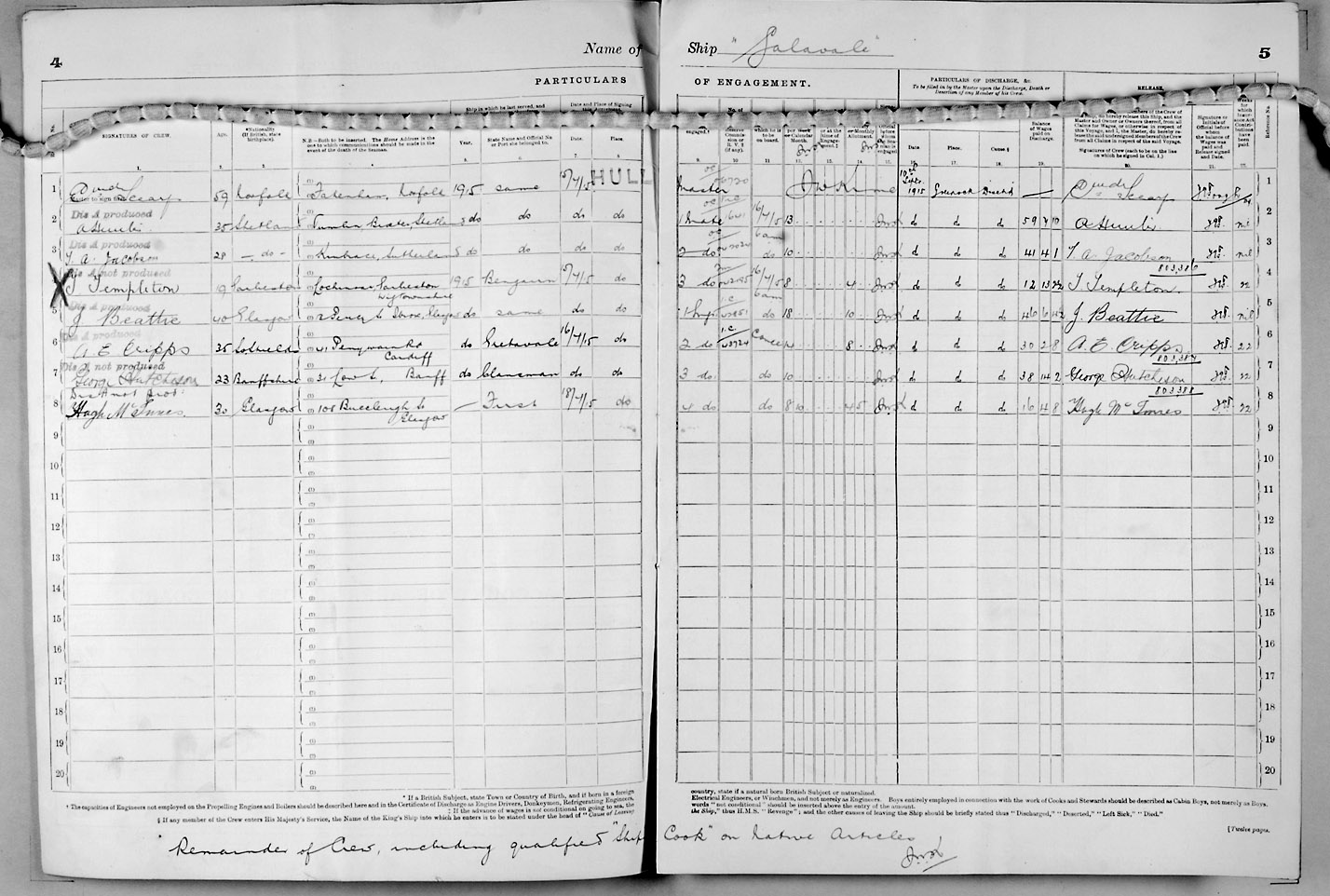 1915 crew list for the vessel 'GALAVALE'