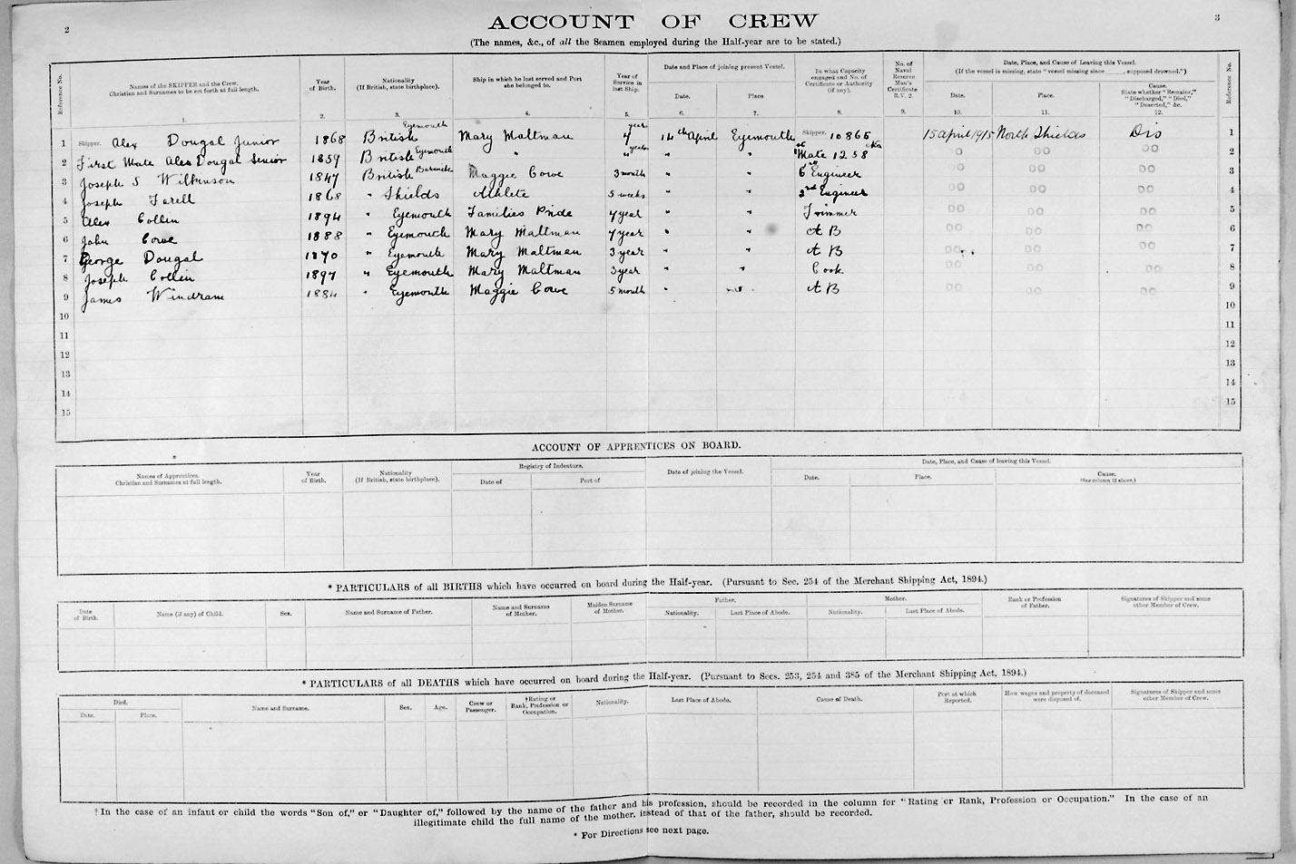 Crew list document for vessel 'MARY MALTMAN'