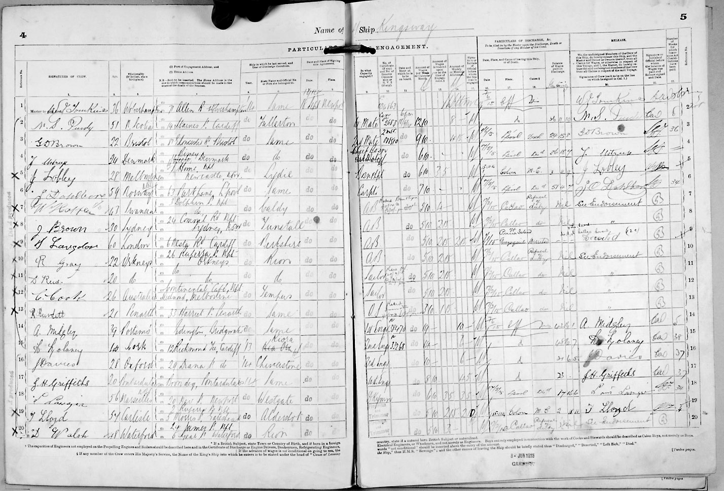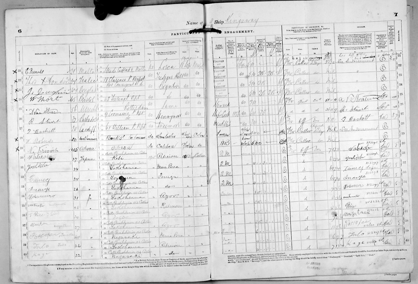 Crew list document for vessel 'KINGSWAY'
