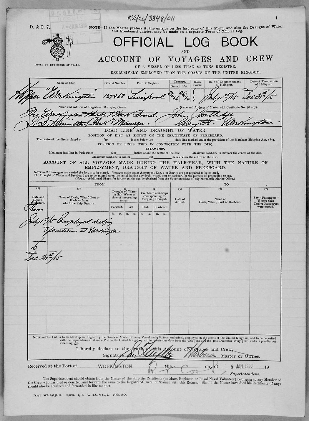 Crew list document for vessel 'WORKINGTON'