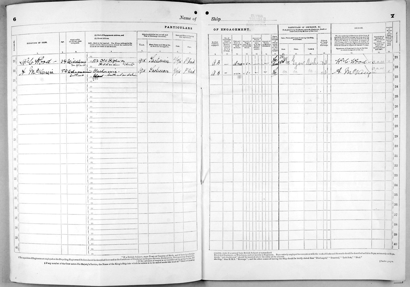 1915 crew list for the vessel 'ELYSIA'