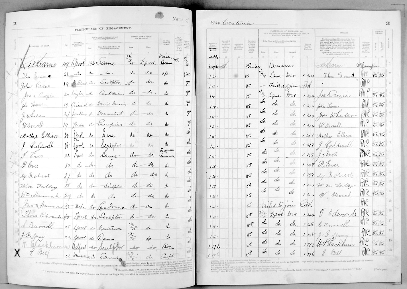 Crew list document for vessel 'CENTURION'