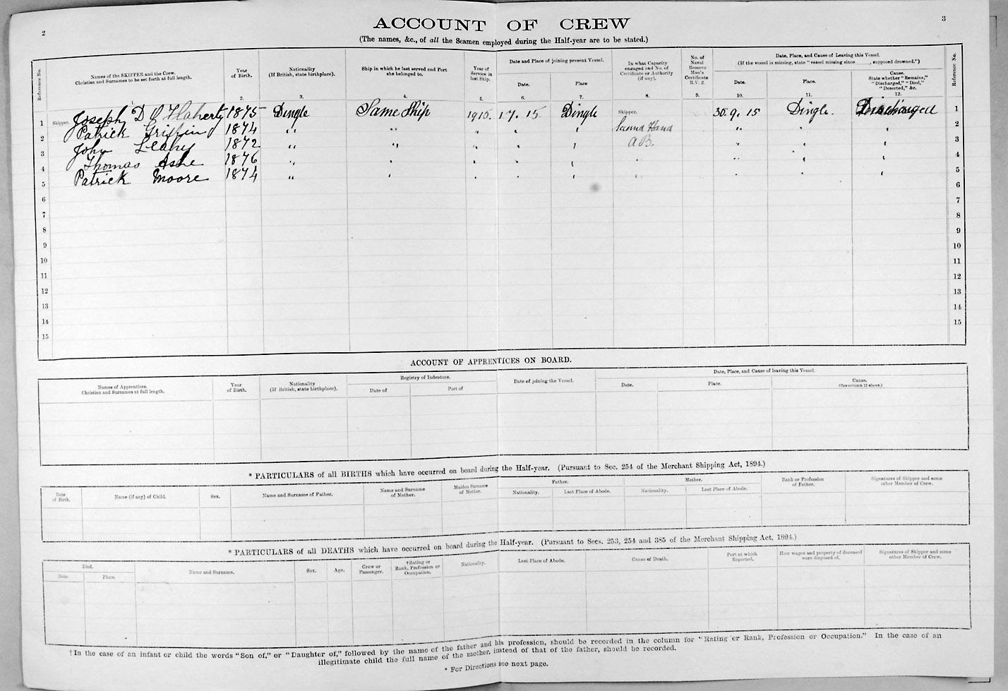 1915 crew list for the vessel 'MARY IMMACULATE'