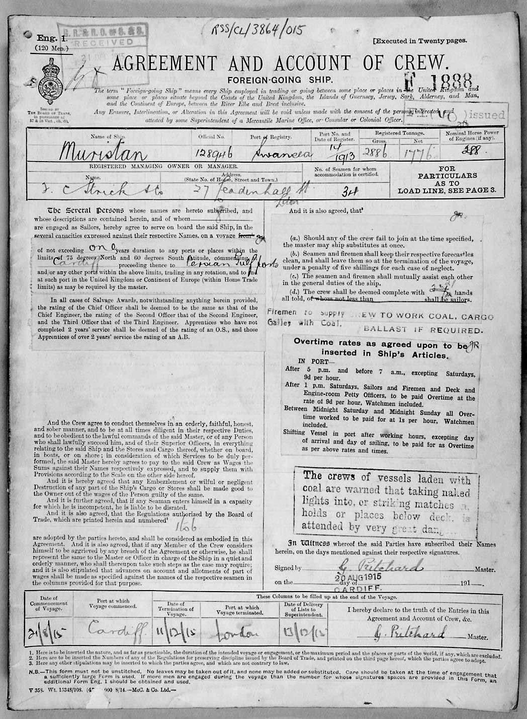 1915 crew list for the vessel 'MURISTAN'