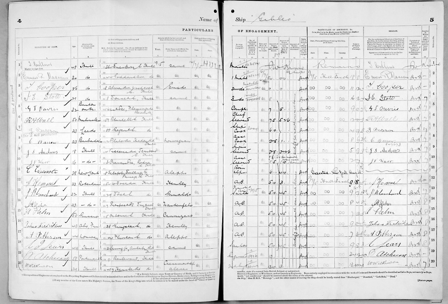 Crew list document for vessel 'GALILEO'