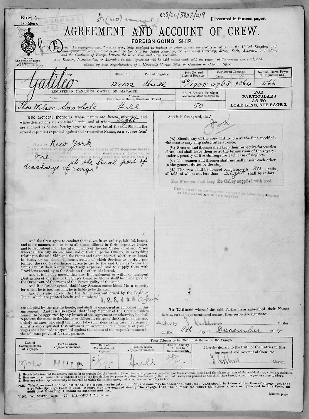 Crew list document for vessel 'GALILEO'