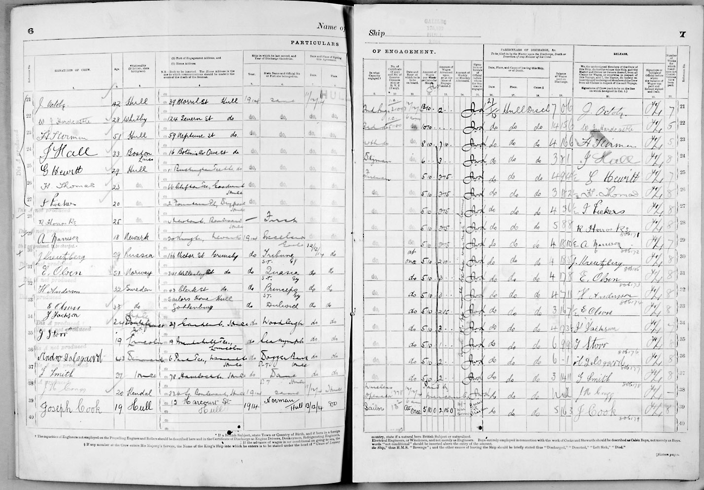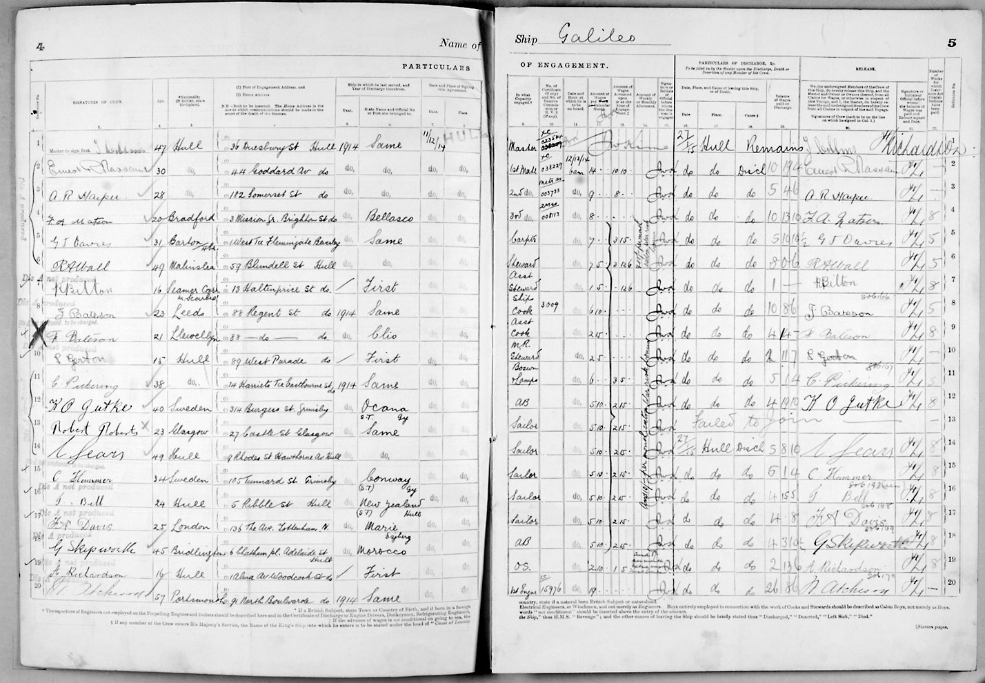 1915 crew list for the vessel 'GALILEO'