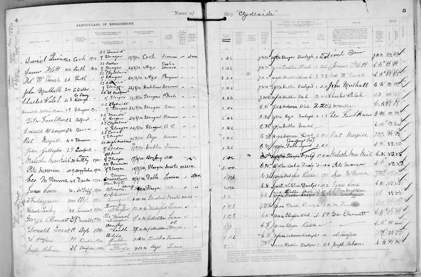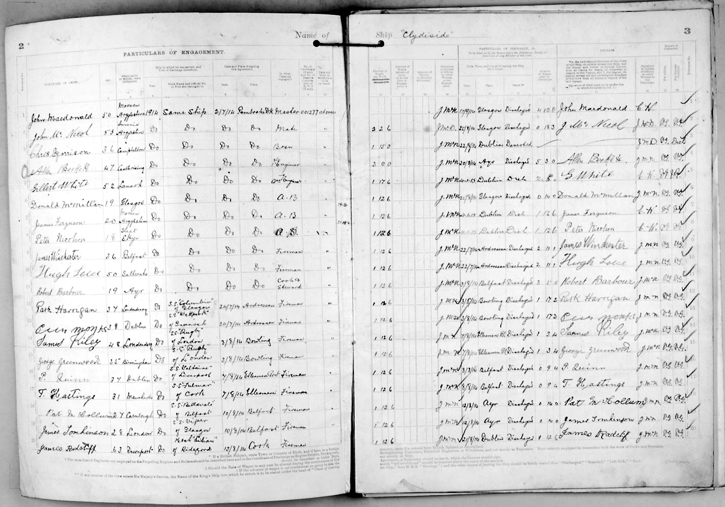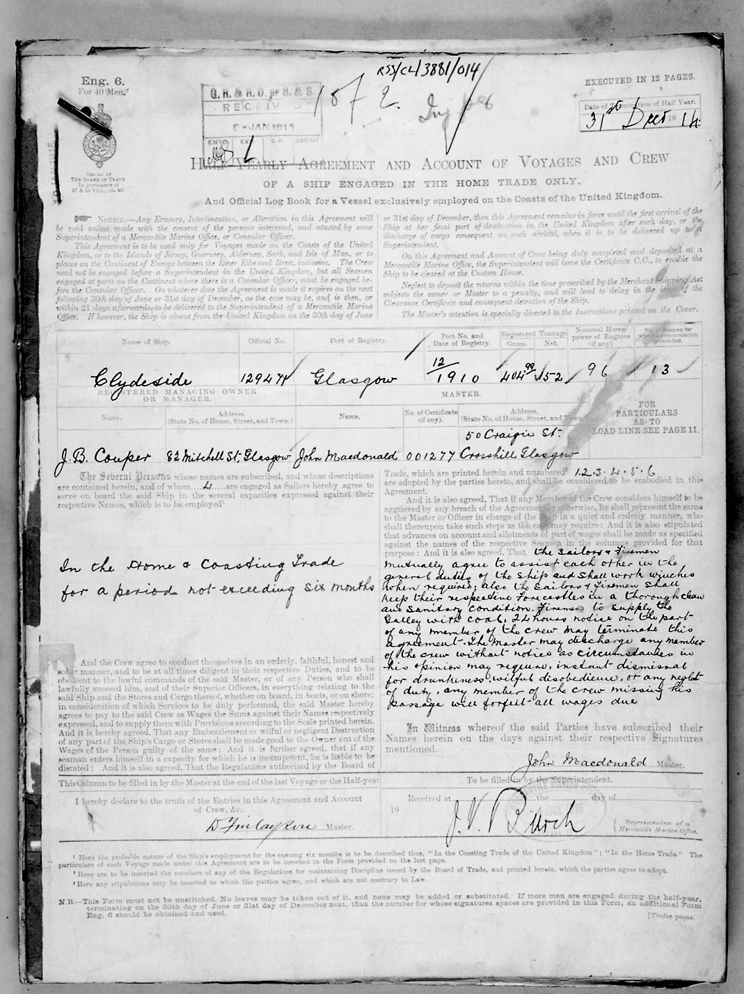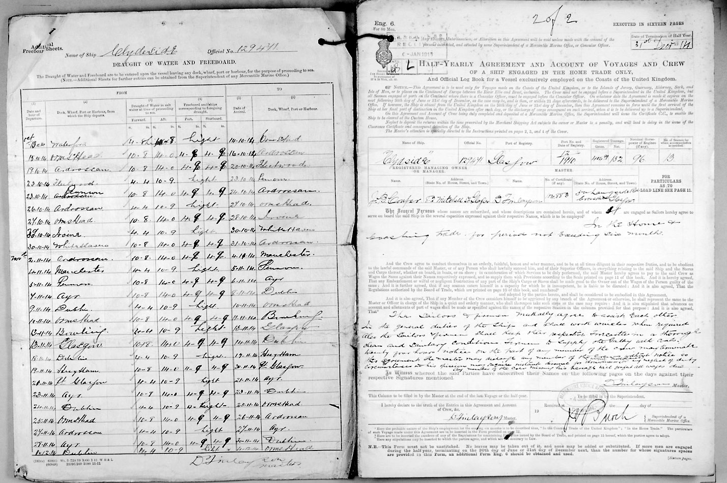 Crew list document for vessel 'CLYDESIDE'