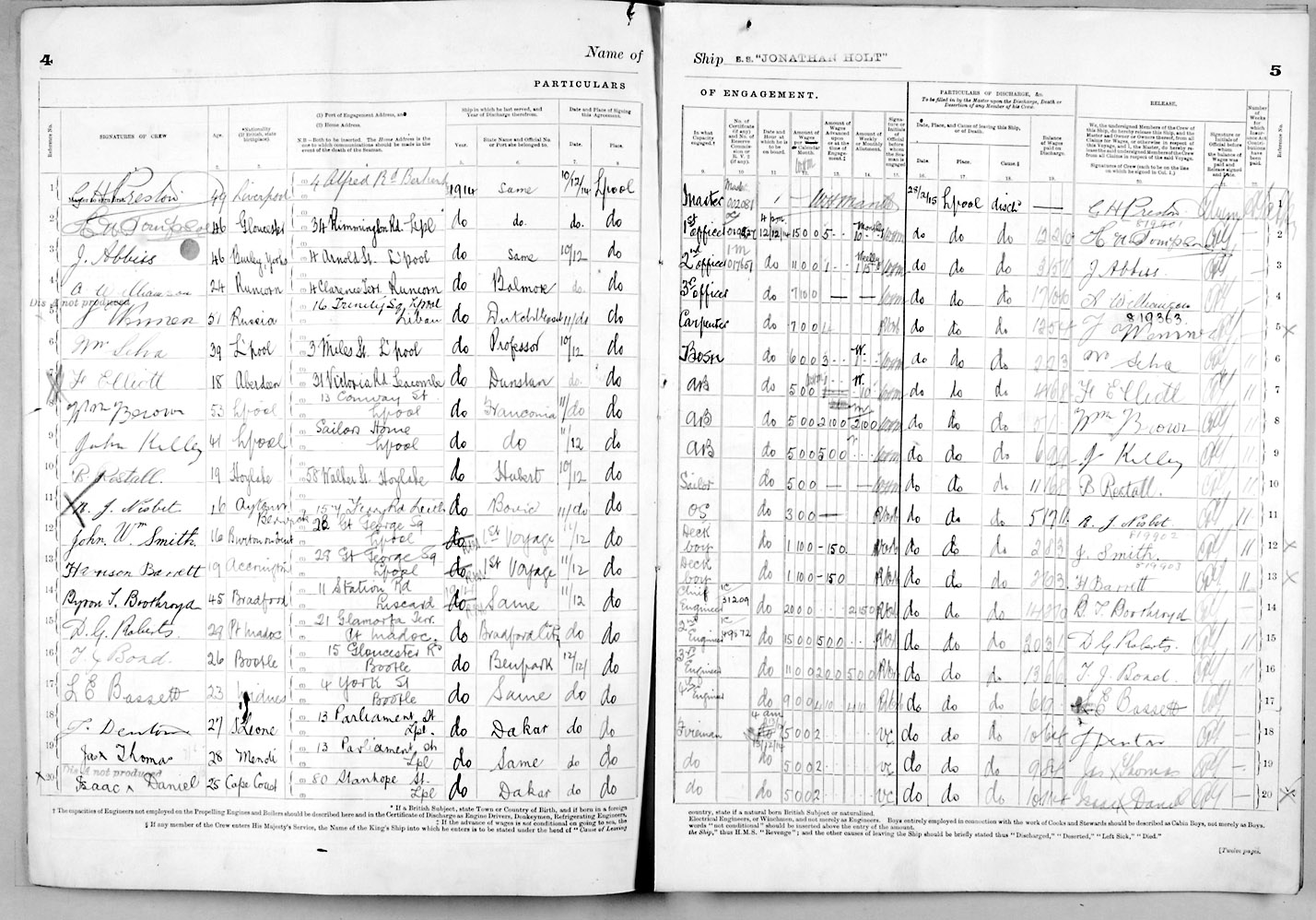 1915 crew list for the vessel 'JONATHAN HOLT'