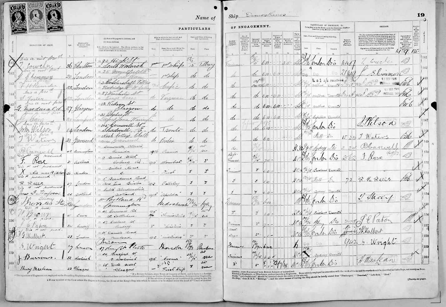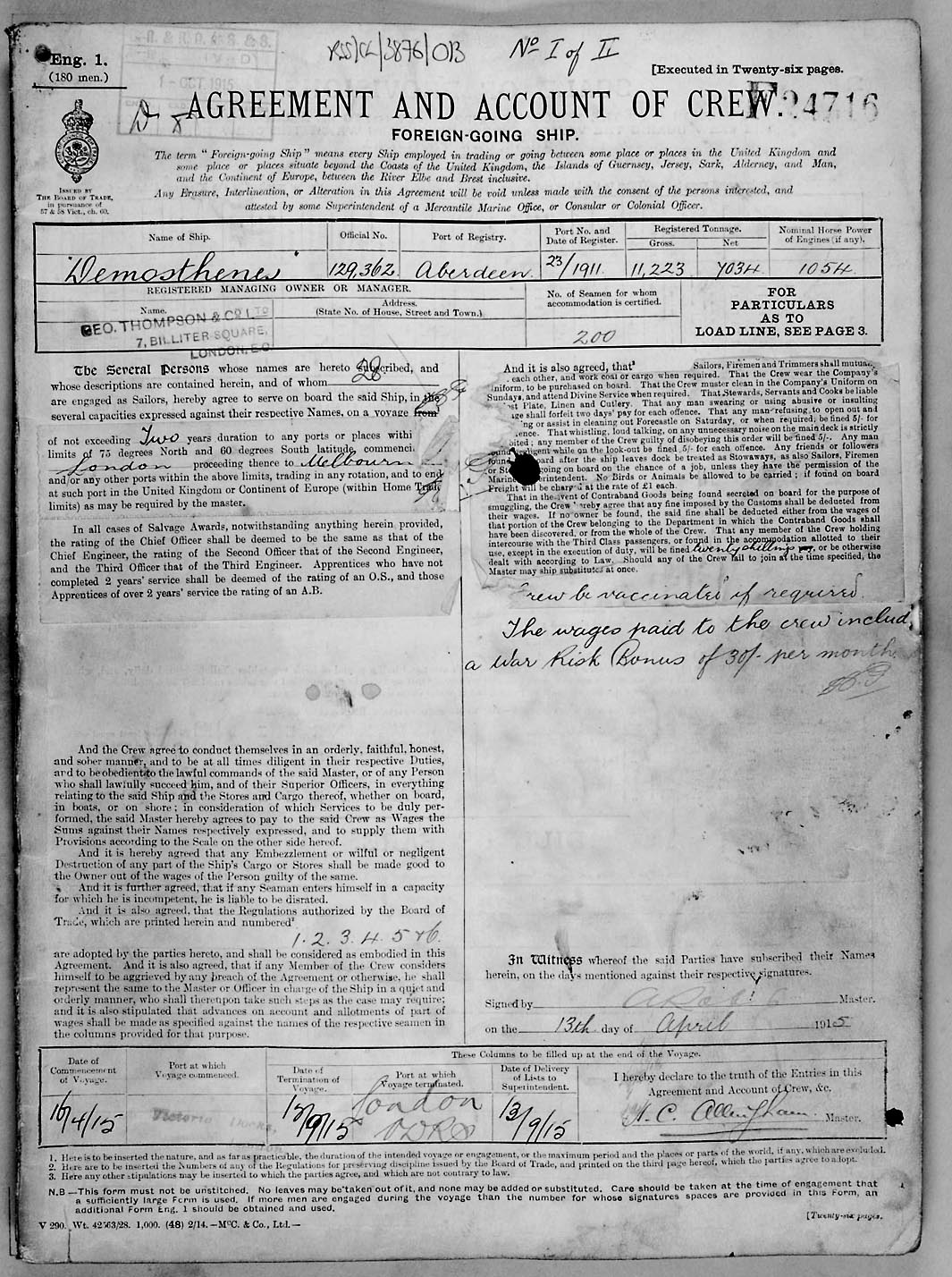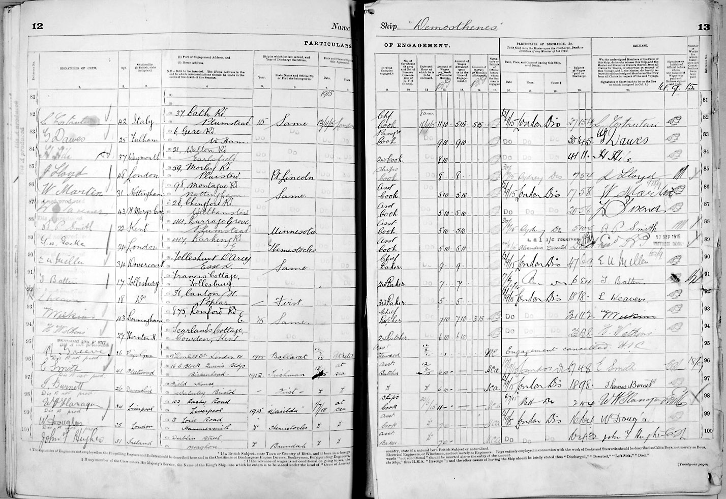 1915 crew list for the vessel 'DEMOSTHENES'